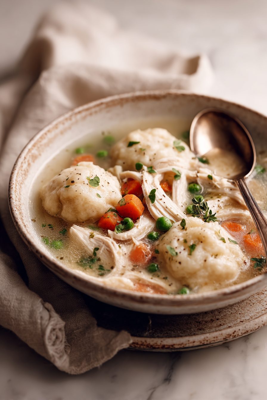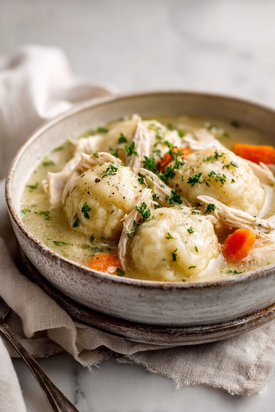 My husband calls this “that magic pot” because he comes home, smells it from the driveway, and immediately starts asking if I hid snacks from him in the garage. Our kiddo insists the dumplings are clouds and will not be convinced otherwise. It became our go-to when a week went sideways: one pot, minimal brain power required, maximum cozy points. Once I tried making the dumplings too early and they puffed into one sad gloppy mass—lesson learned: timing matters, but you’ll laugh about it later.