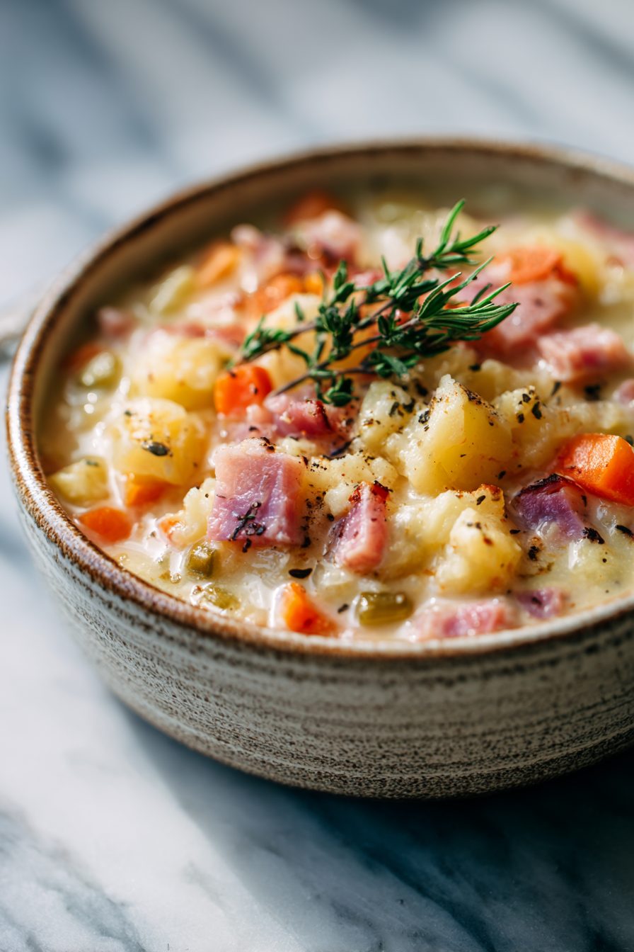 – Vegetarian: skip the ham, use veggie broth, add smoked paprika, a splash of soy or tamari, and a spoon of white miso for depth.