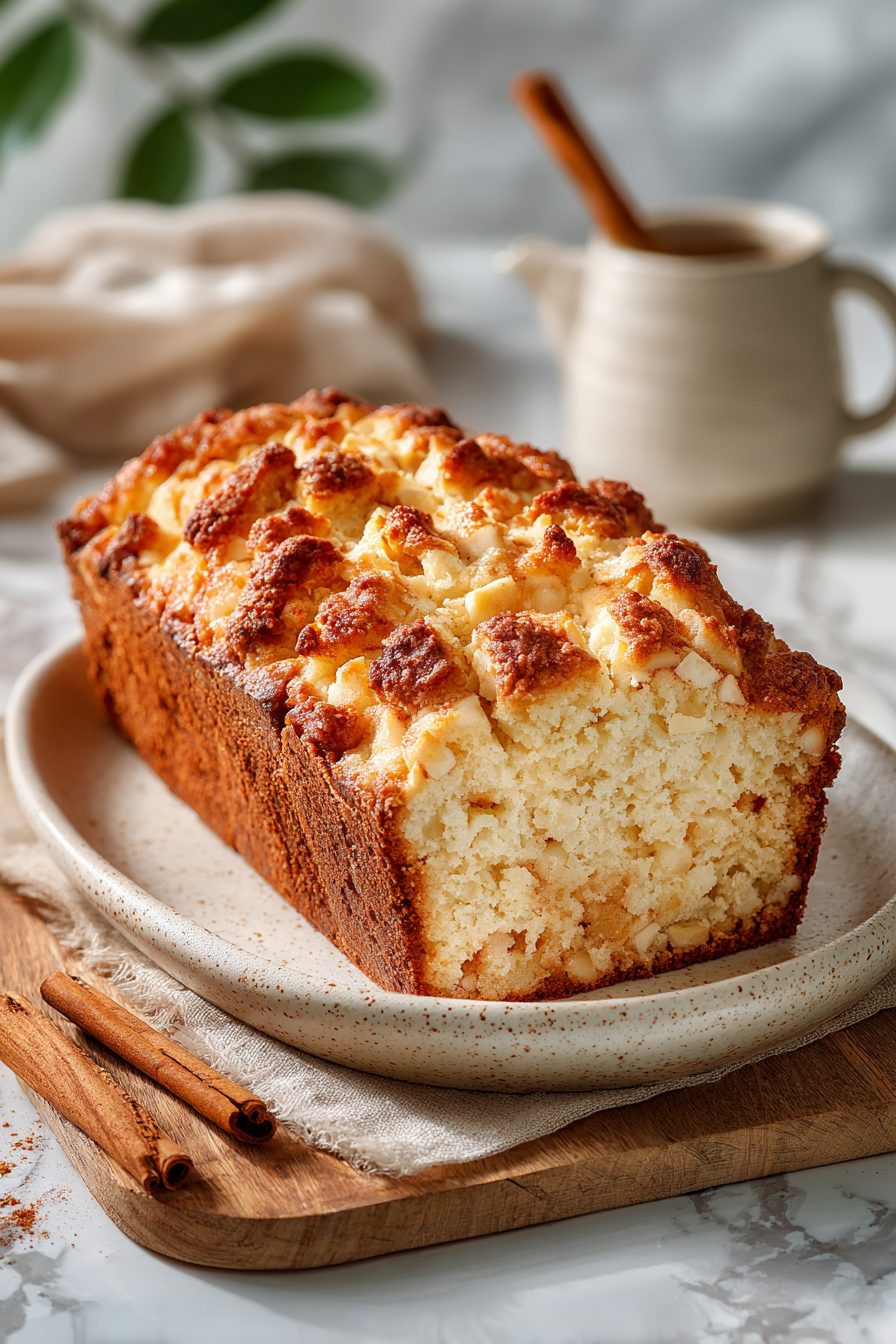 This loaf is everything I want on a sleepy Sunday: tender, cinnamon-spiked bread jam-packed with apple chunks and topped with a crunchy streusel that fights for attention with the soft crumb. It’s not fussy — you don’t need a stand mixer or special pans — but it looks like you spent heart and soul on it. Perfect for breakfast, mid-afternoon dipping into coffee, or bringing to a neighbor when you forgot it was their birthday until the last minute.