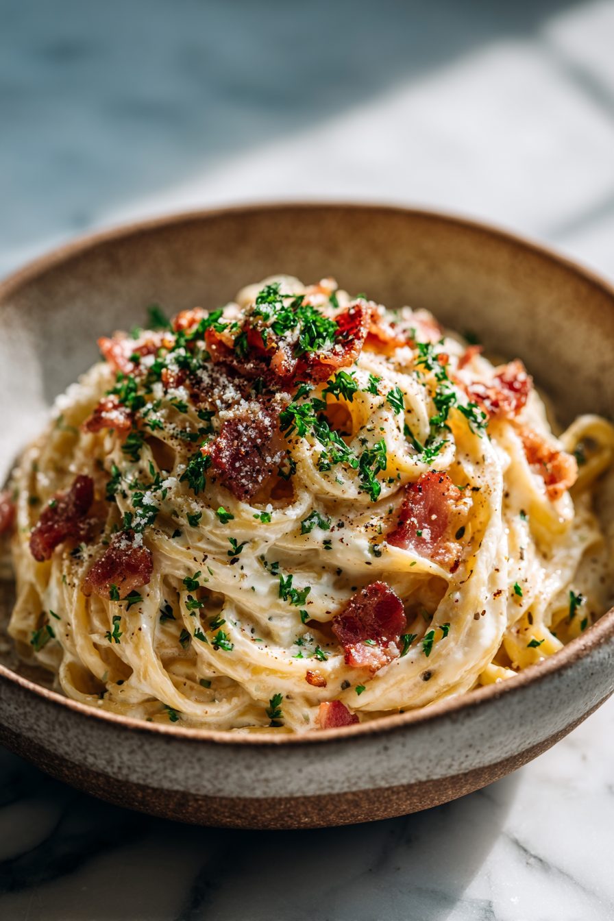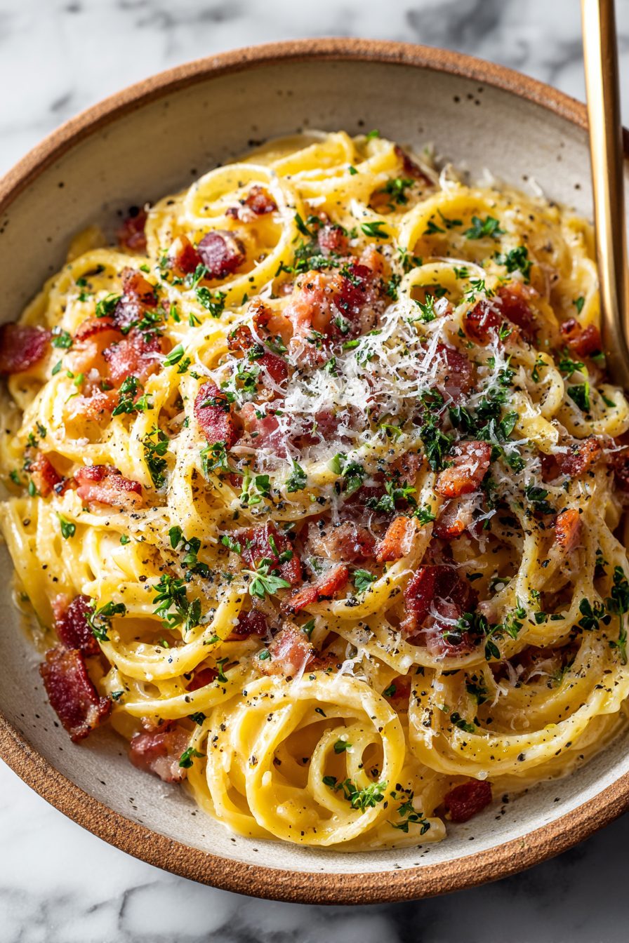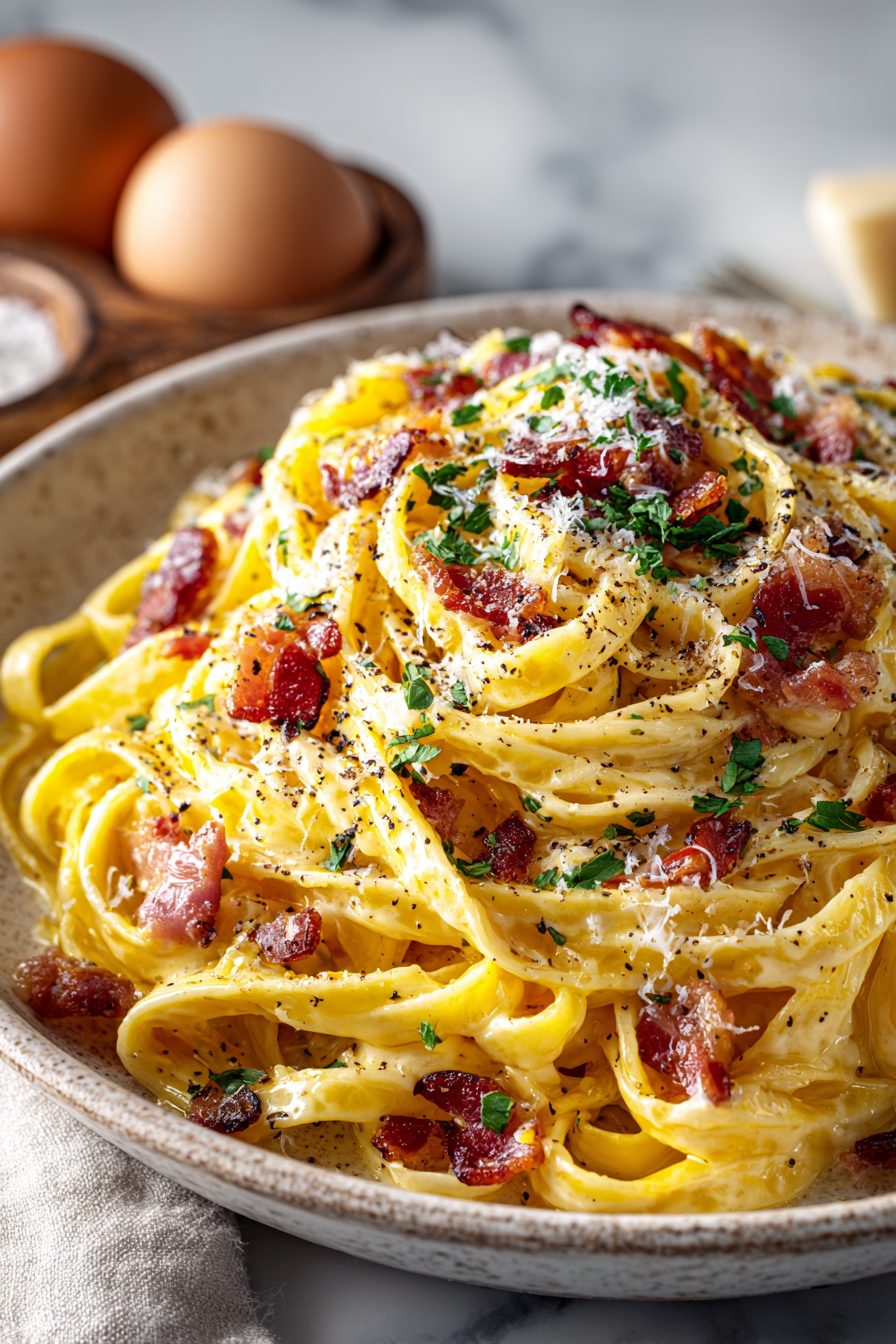 This recipe is an original creation inspired by classic Easy Fettuccine Carbonara Recipe flavors. All ingredient ratios and instructions are independently developed.