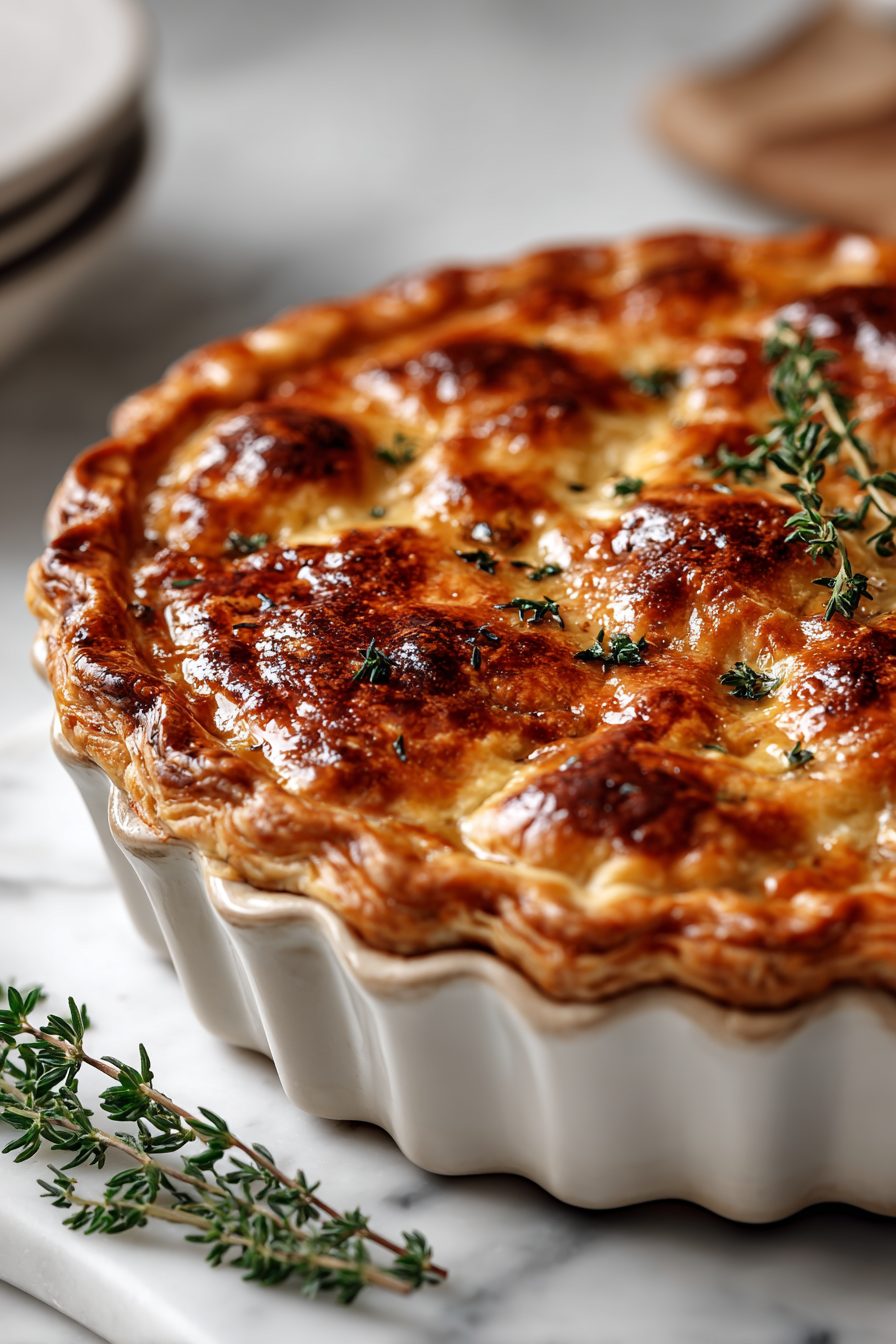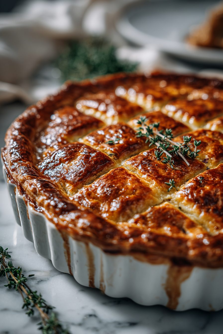 My husband calls it “the pie that melts my brain” because he eats leftovers cold out of the fridge at midnight like it’s a personal delicacy. Our kid eats around the herbs but somehow always scoops out the sauciest bits and asks for seconds. This recipe slid into our rotation when I had one too many late nights and needed a dinner that could survive my chaos — and it stuck. We now have a running joke that if I can burn toast and still pull off this pie, it’s recipe magic.