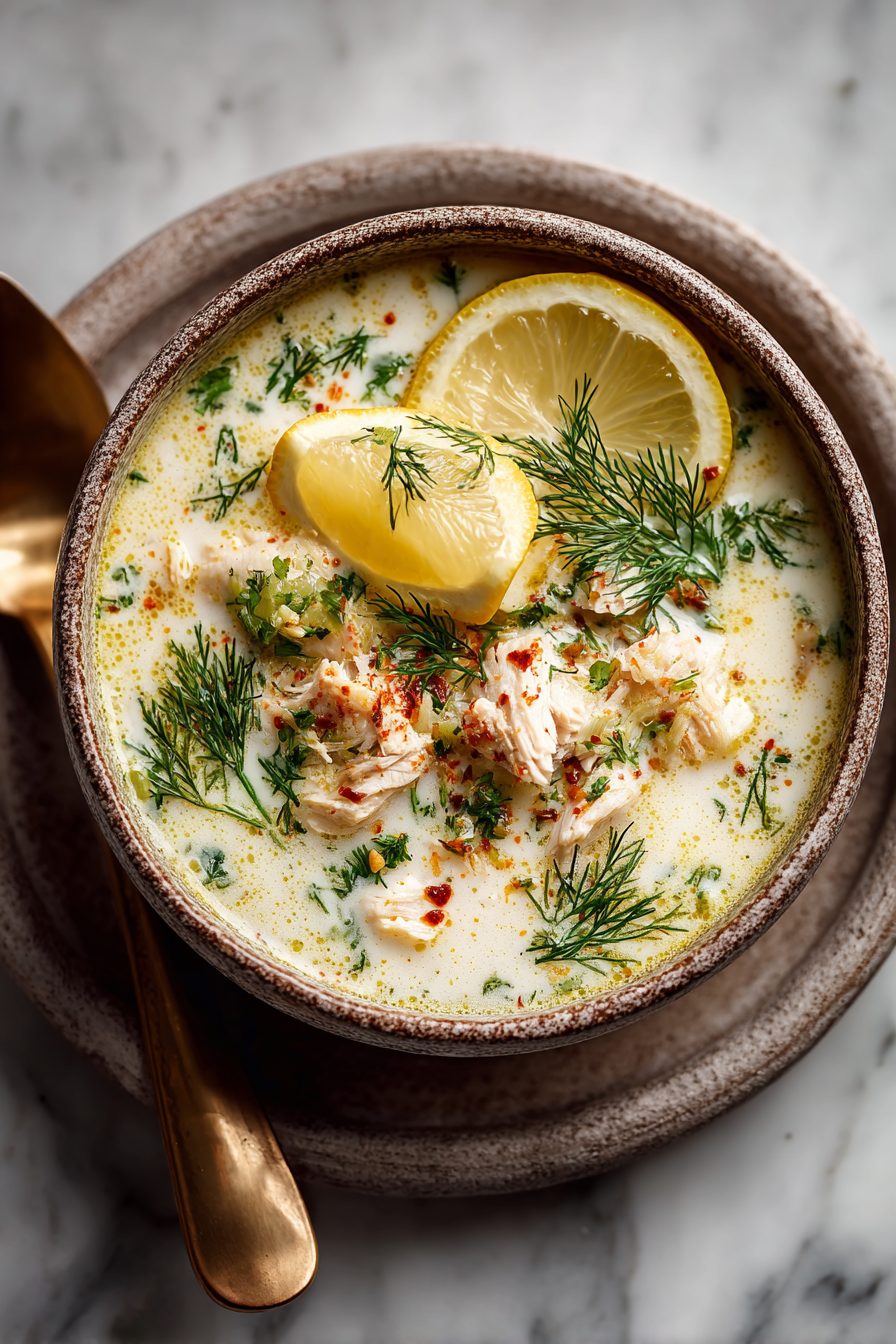 This soup is like a warm hug in a bowl — bright lemon, silky eggy broth, tender shredded chicken and a little comfort that feels like home. It’s Greek avgolemono vibes but simplified so you can actually make it on a weeknight without feeling like you need a PhD in patience. Light, tangy, and oddly addictive, it’s the kind of soup that clears a cold and fixes a messy day.
