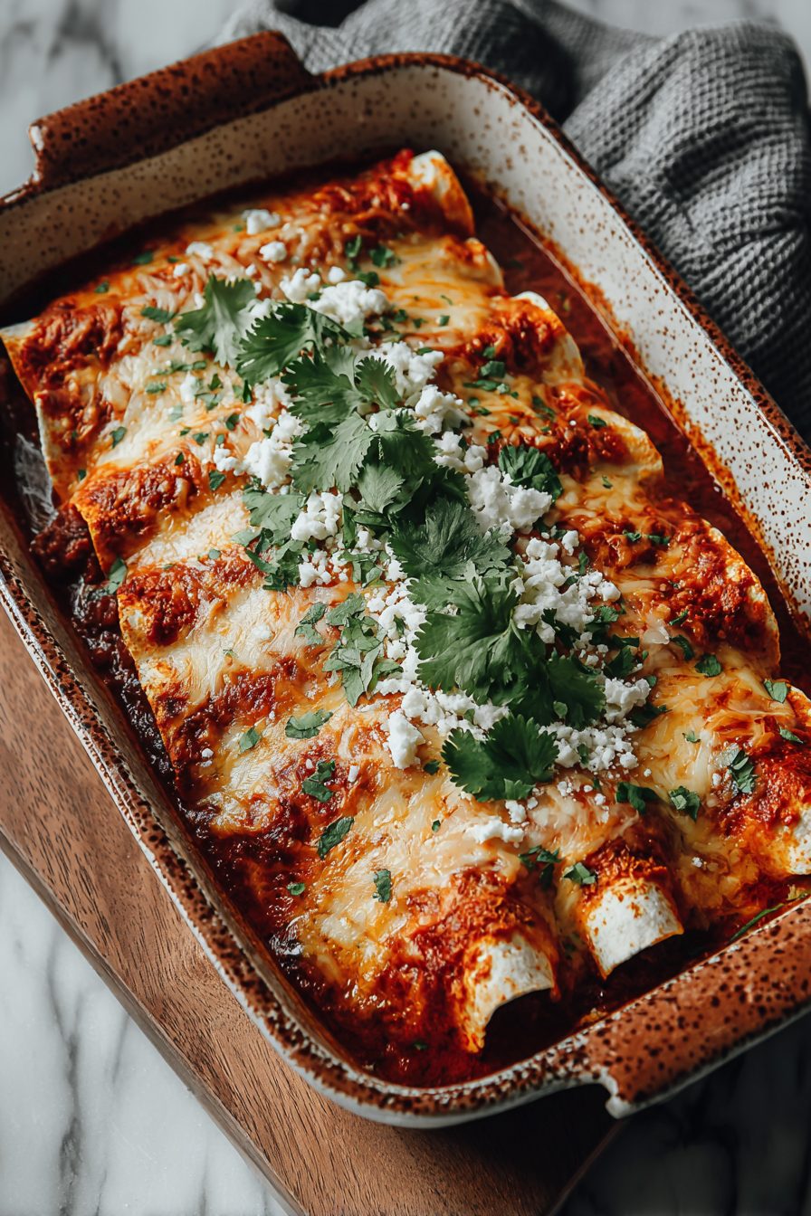 – Pan size: use a baking dish that gives each enchilada room to crisp at the edges.