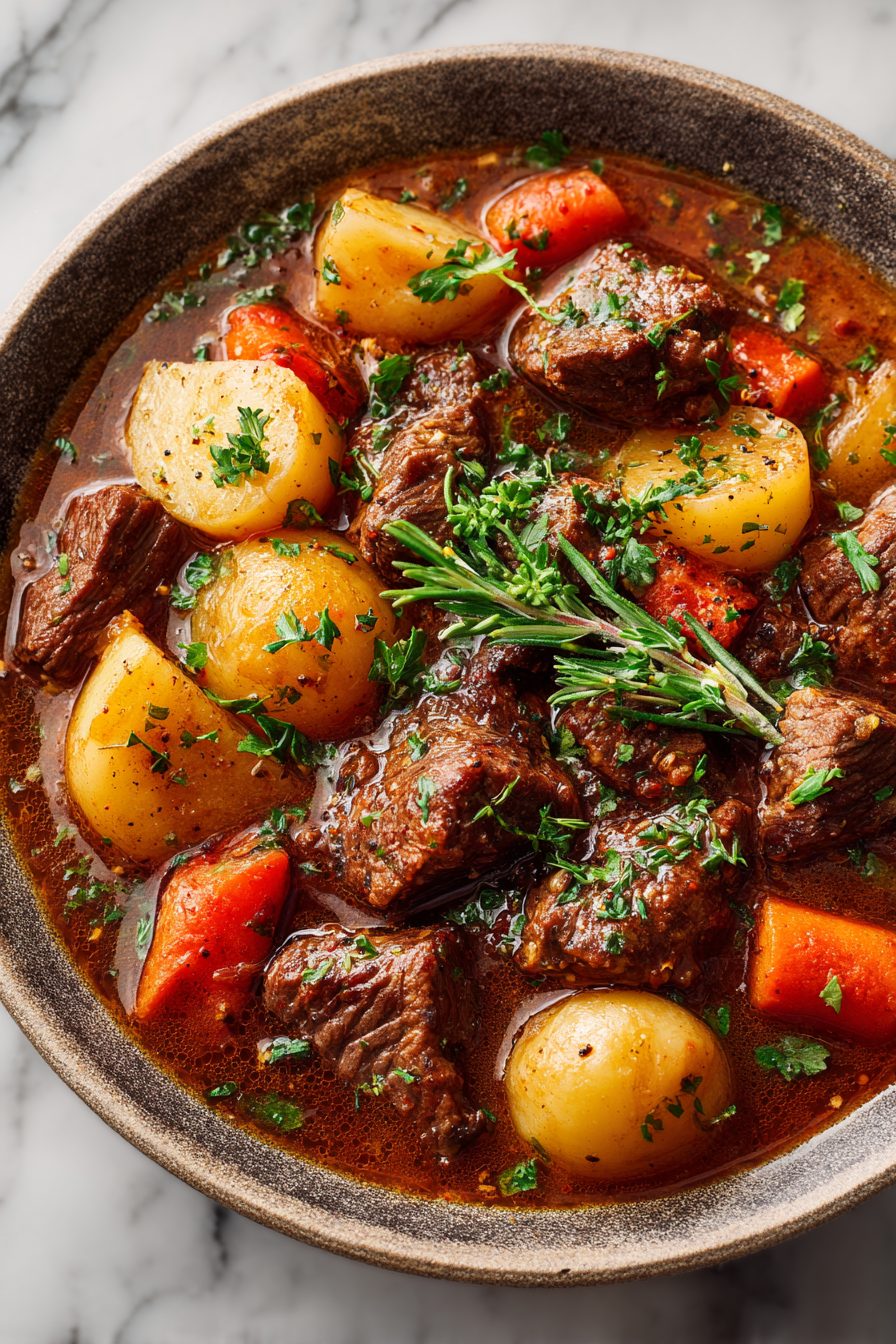 This is a forgiving stew. I once forgot to brown half the beef because I was answering a text, and the stew still turned out amazing — though browning does give it that extra theater and depth. Another time I swapped parsnips for potatoes and everyone raved; do what feels right. I usually make it in a heavy Dutch oven because I like the crust that forms on the bottom; then I scrape it up for the gravy. If you’re impatient, brown the meat in batches so the pan doesn’t steam. Also, yes, you can stir in a splash of coffee instead of extra stock if you’re feeling weirdly experimental — it worked, shockingly.