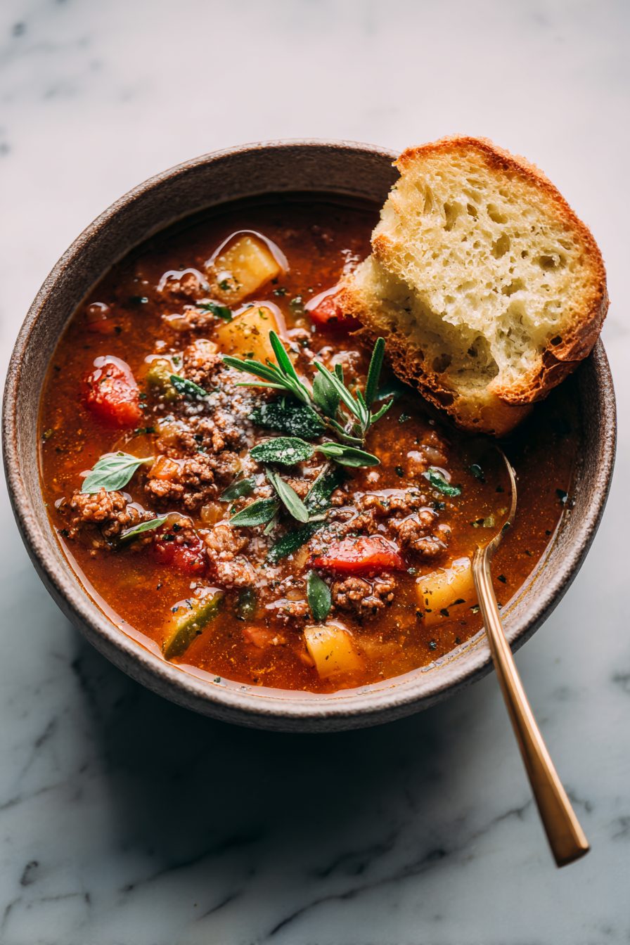 There’s this cozy, tomato-y, beefy soup that tastes like your favorite diner burger met a pile of vegetables and decided to be wholesome about it. It’s weeknight-easy, feels like a hug, and makes the house smell like somebody knows what they’re doing. Hamburger soup is the pantry kind of magic I lean on when I need dinner to be friendly, forgiving, and delicious without demanding a full dissertation.