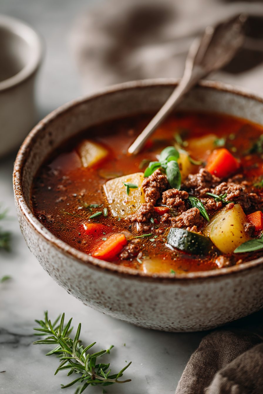 This stew is the kind of dinner that makes the whole house inhale a little louder — saucy, beefy, and stupidly comforting. It’s basically browned ground beef simmered with tomatoes, broth, veggies and a handful of pantry tricks so it tastes like you simmered it all day, even though you didn’t. Perfect for nights when you want cozy without the fuss.