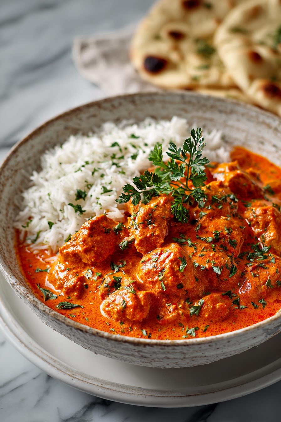 Creamy, gently spiced butter chicken in a velvety tomato sauce. Comforting, restaurant-style flavor made simple at home.