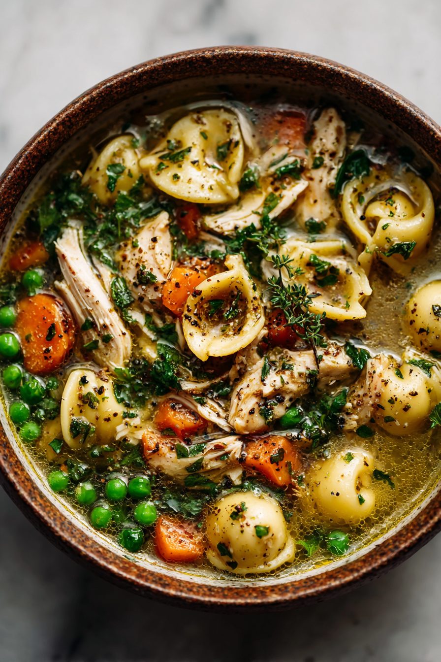 I have a habit of throwing a Parmesan rind into anything brothy and this soup is where it truly shines—it melts in spirit, not in body, and leaves behind this cozy umami thing that makes people think you did something complicated. One time I swapped the usual small pasta for cheese tortellini and they exploded because I got distracted and let them go too hard. Would I do it again? Yes, but I’d simmer gently and whisper to the pot like a weirdo. I’ve also learned my lesson with garlic: it wants to be golden and fragrant, not bronzed like it just came back from Cancun—burned garlic = bitter soup. If you’re using rotisserie chicken, toss the skin in while simmering and fish it out later. Sounds questionable, tastes incredible.