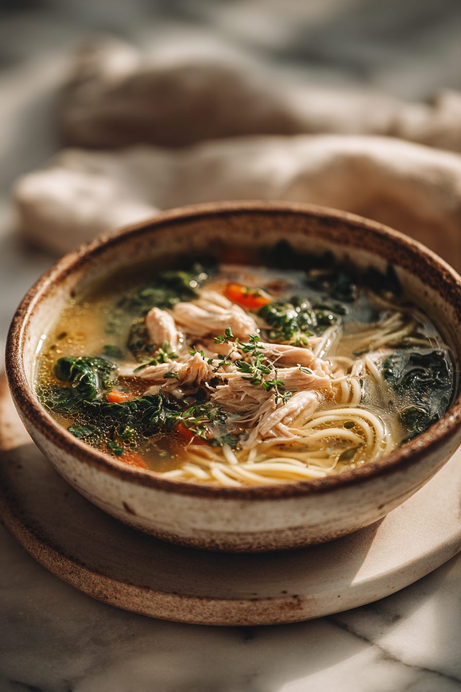 Fridge the broth and chicken together in one container, and keep the cooked pasta in its own smaller container. They’ll both be happy for a few days. Reheat the broth till steamy, then drop the noodles in the bowl and pour the hot soup over. Freeze the broth (no pasta) like a champ; it thaws beautifully. Cold for breakfast? Honestly… kind of perfect if you’re under the weather. I’ve done it, no regrets.