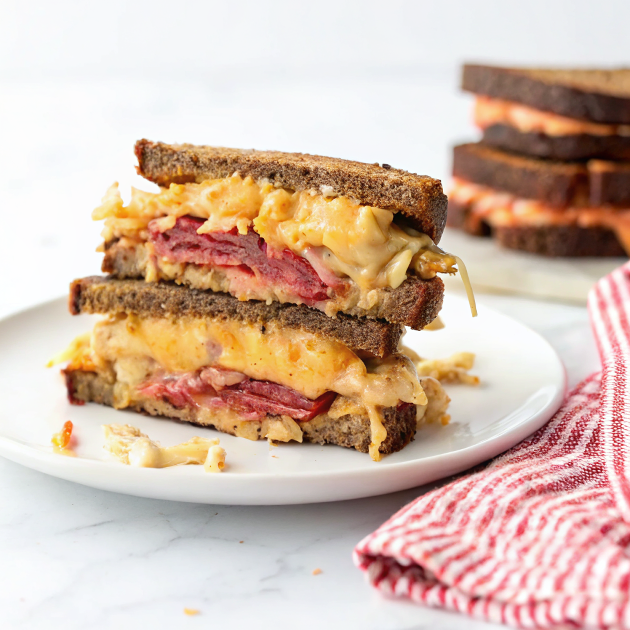Absolutely. Swap the corned beef/pastrami for smoked tofu, tempeh, or thinly sliced roasted mushrooms. Use vegan cheese and vegan mayo for the dressing, and you’ll still get that rich, spicy-sour bite.