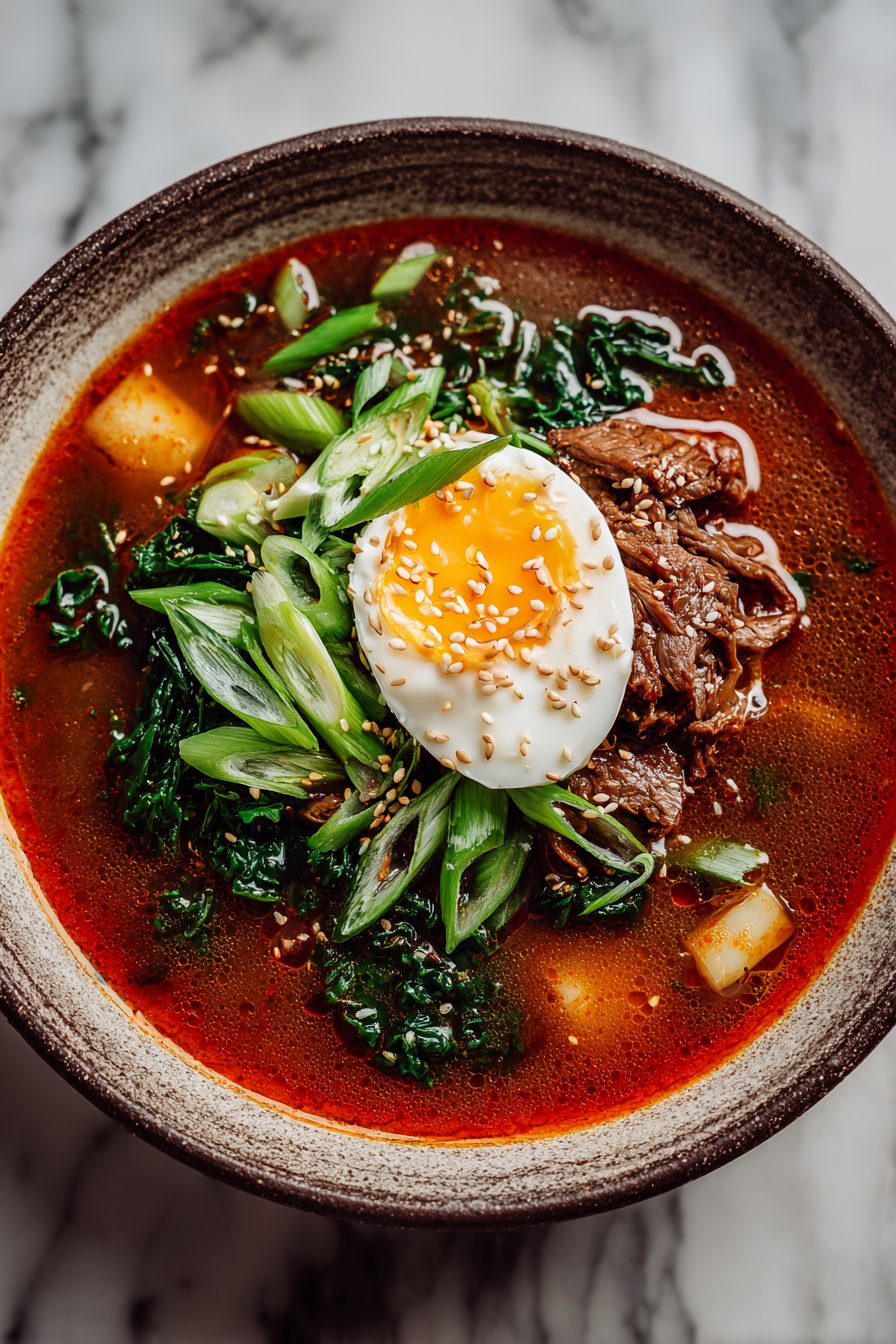 I’ll confess: I once burned the garlic because I was texting someone about a sale on mittens and walked away. The smell made the whole house hate dinner for an hour. My workaround? Add aromatics in stages — garlic later, onions earlier, and always keep a window open for smoked-sauce emergencies. I also accidentally tossed in a spoon of miso once when I was out of gochujang and it gave the soup a deeper, slightly nuttier body — weirdly good. This soup is forgiving, so experiment; it’ll forgive you.