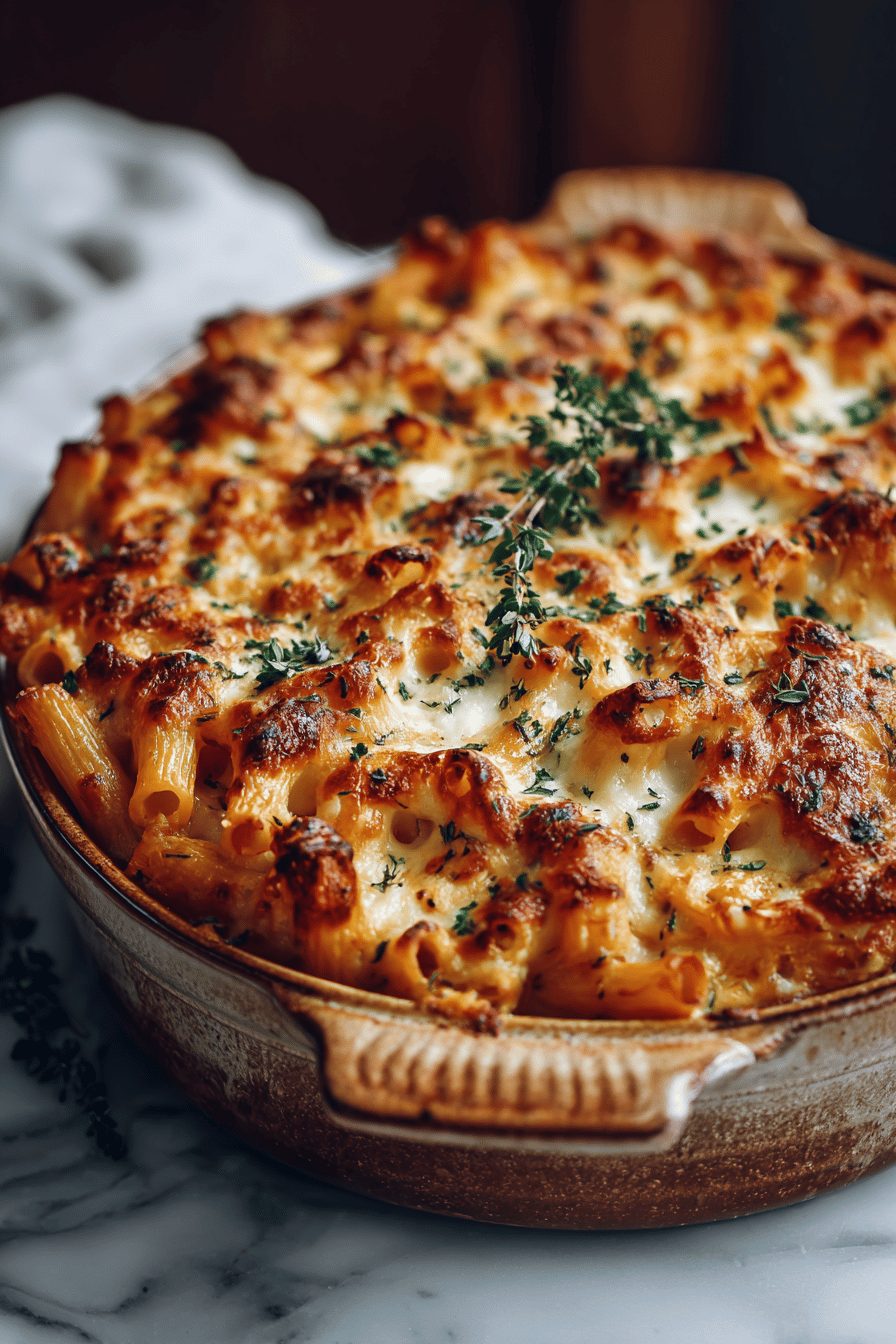 Leftovers love the fridge for 3–4 days in an airtight container. Reheat covered in the oven or microwave (a sprinkle of water and a lid helps prevent dryness). Cold ziti for breakfast? No judgment — it’s oddly satisfying with a fried egg on top. To freeze, portion into meal-sized containers or freeze the whole unbaked casserole; thaw overnight before baking for best texture.