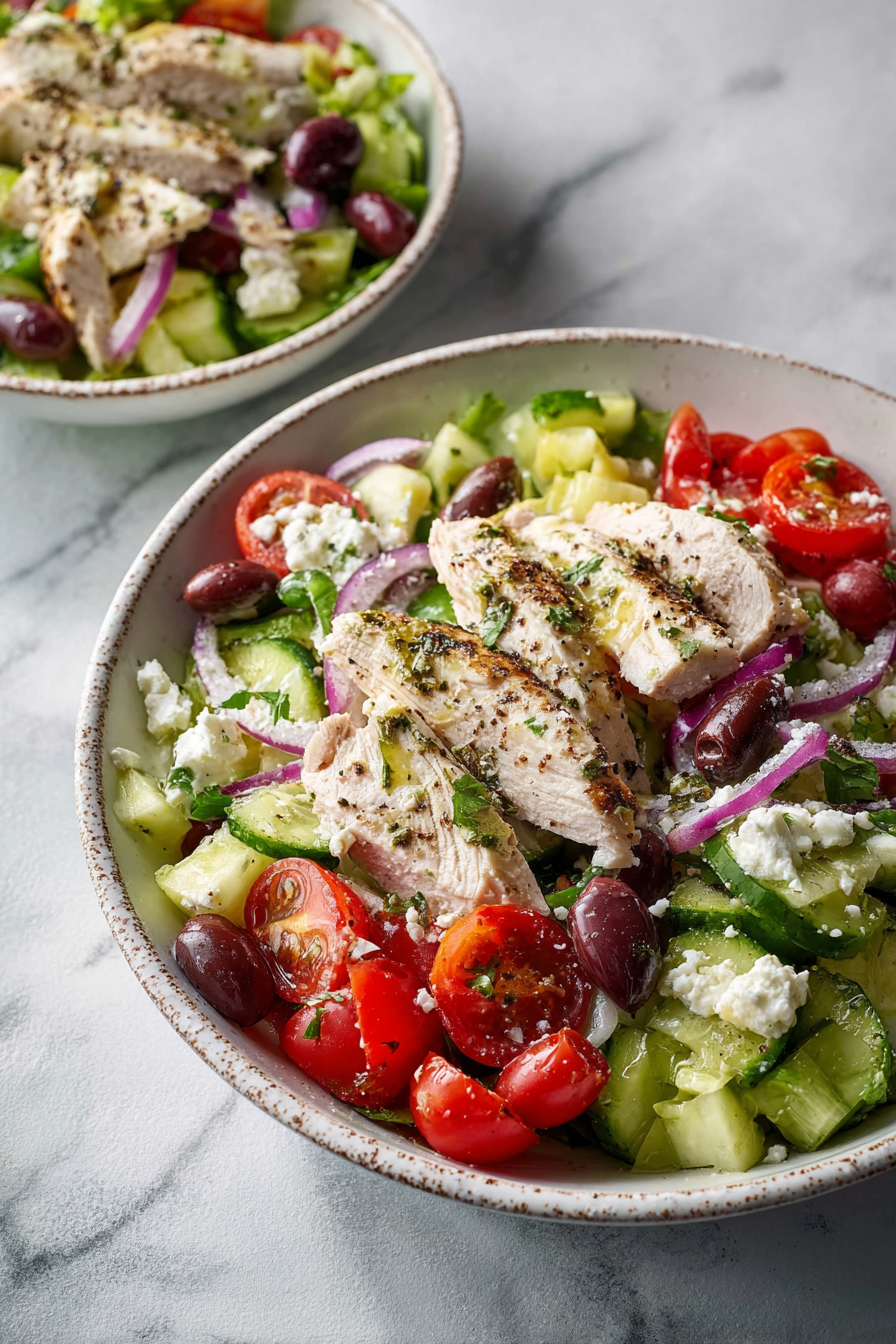 This one is gloriously forgiving. I once swapped fresh oregano for dried because I was out and the whole salad still tasted like sunshine. Pro tip: don’t overdress it — the vegetables should still have a little bite. Also, if you make it with warm chicken, the flavors bloom faster and the lemon mellows out in a way that makes me unreasonably happy. I’ve forgotten the feta on more than one occasion and sworn it tasted “fine” — it didn’t. Add the feta.