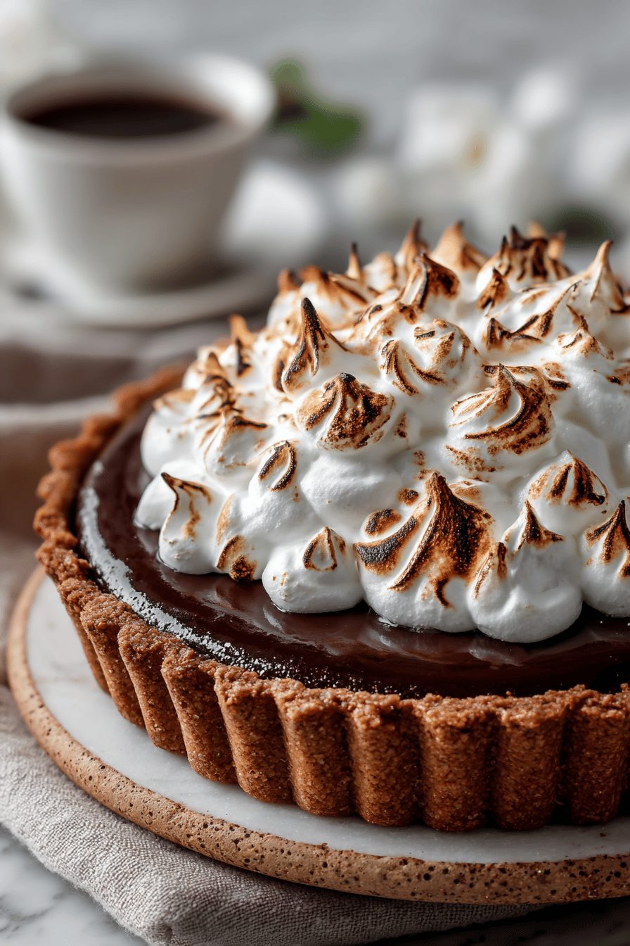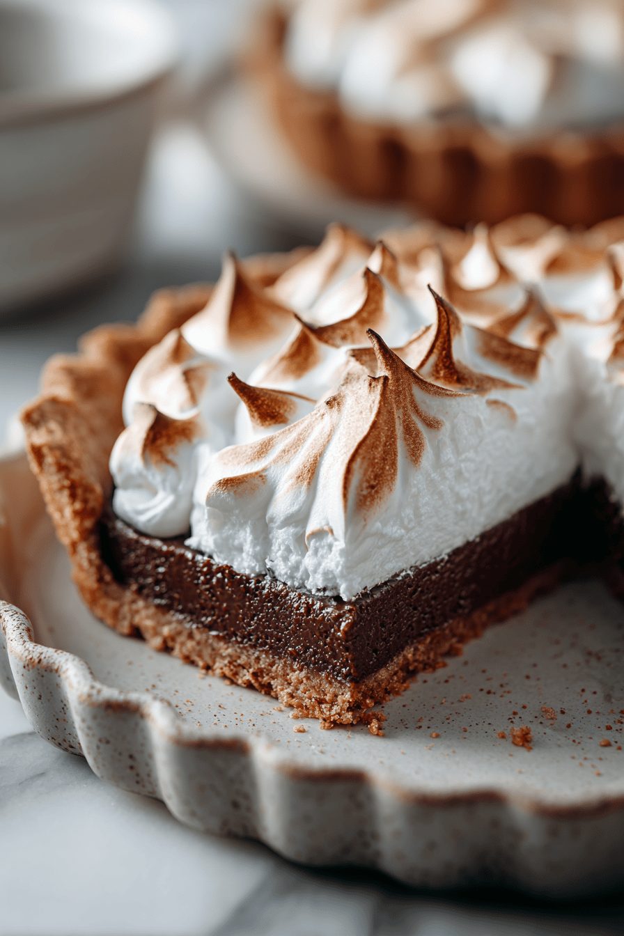 Keep leftover pie covered lightly with plastic wrap or an inverted cake dome in the fridge for 2–3 days. The meringue will soften and weep a bit overnight—still delicious but not as dramatic. Cold pie is absolutely fine for breakfast (no judgement here); the chocolate tastes richer straight from the fridge. Don’t freeze the assembled pie—meringue and thawing are not friends.