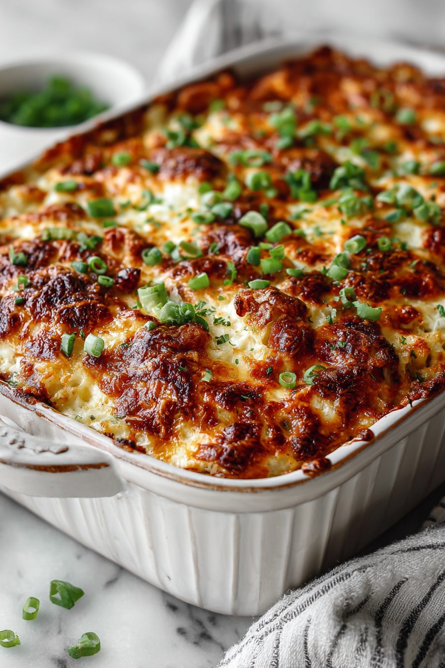 – Use a 9×13-style pan so the layers spread and heat evenly.