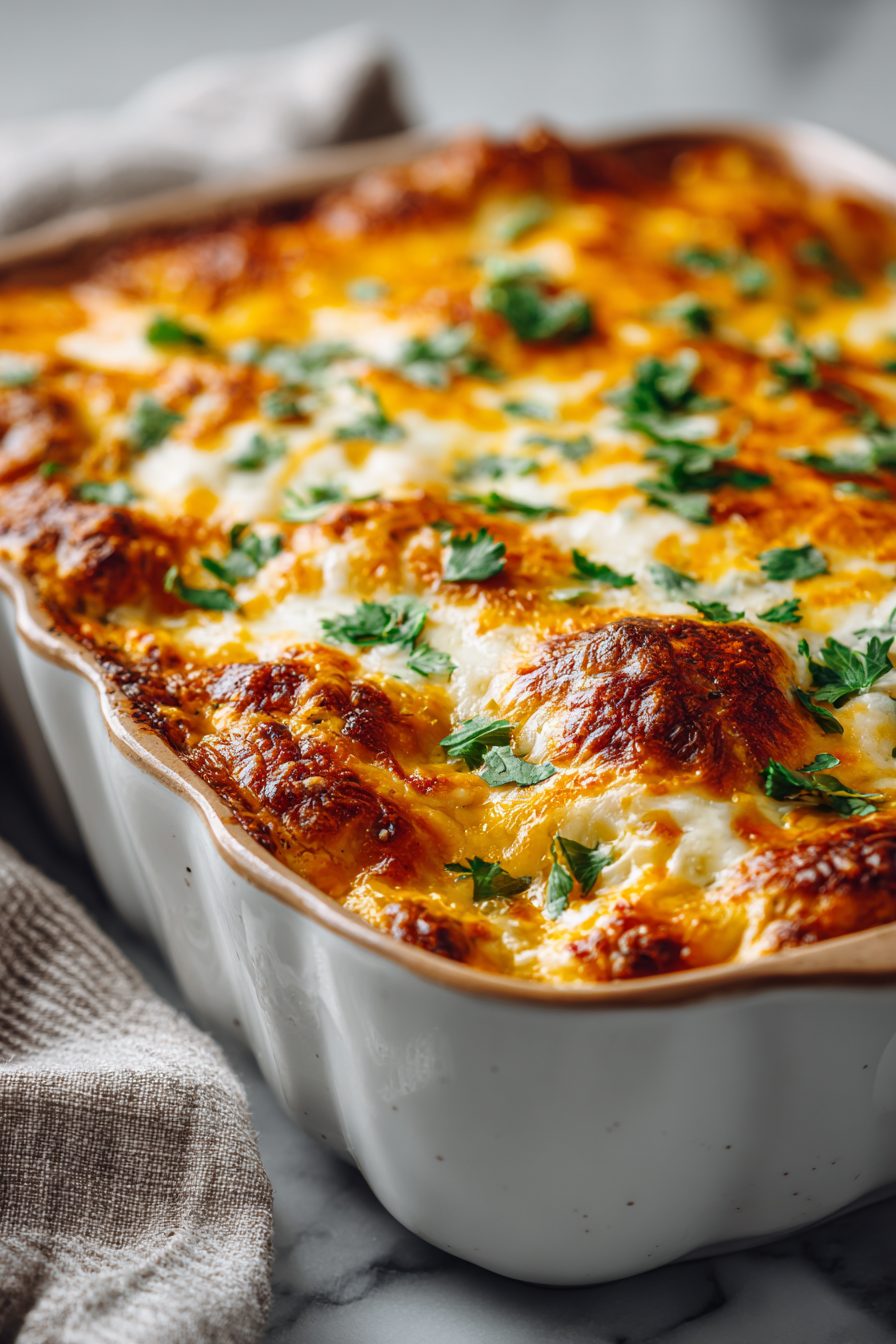 My husband will eat this for breakfast if I let him. True story: I once made it on a Tuesday, and by Wednesday morning there were two slices missing from the fridge because he’d re-heated and declared it “better than the original.” The kids call it “the cheesy chicken dinner,” which is as flattering as it sounds. It’s one of those recipes that started as leftover clean-up and quietly became a household staple — the kind I rely on when life is chaos and I need something that feels like home.
