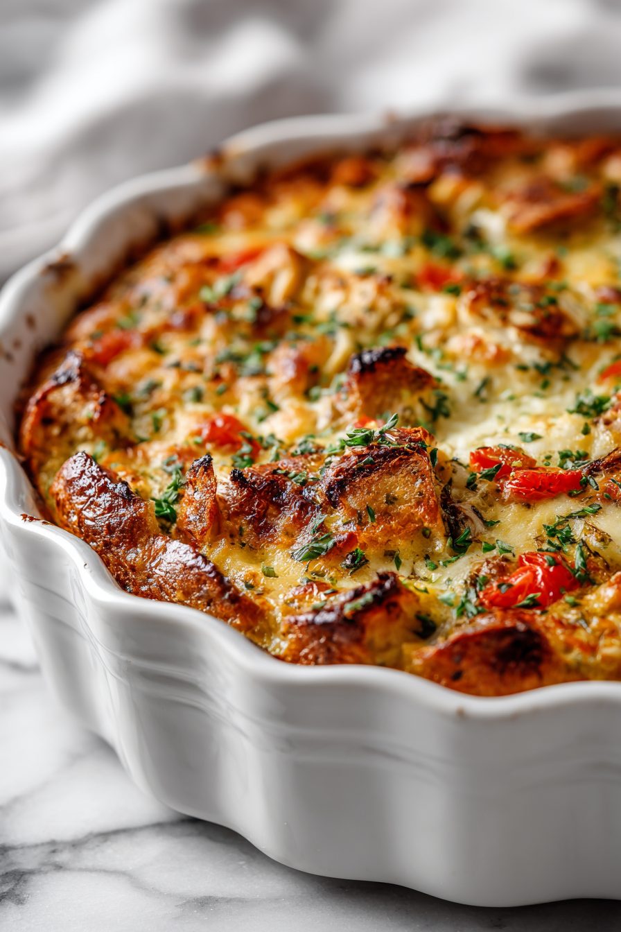 – Assemble the casserole, cover tightly, and refrigerate for up to 24 hours; add a few extra minutes to the bake time if chilled straight from the fridge.