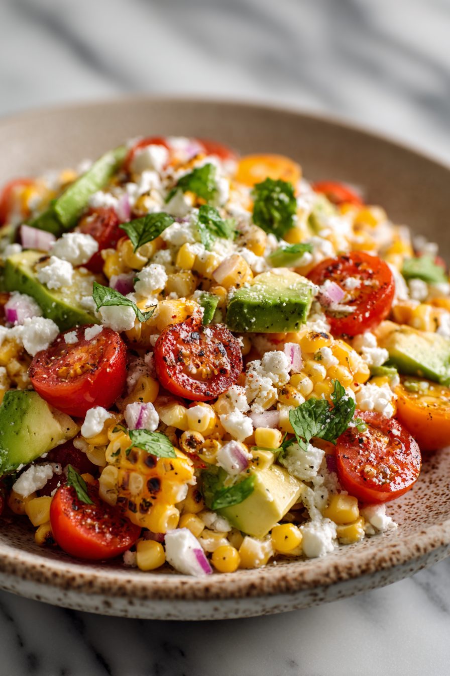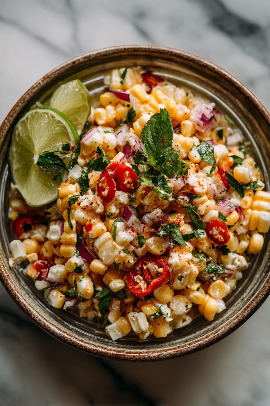 This is where I get messy: I love to char corn directly over a gas flame until the kernels have black spots — it smells like summer and sometimes I cough a little from the smoke. If you don’t have a grill, a hot cast-iron pan does the trick. One time I forgot to add lime and we all stared at it blankly — lime is the personality the salad shows up with, so don’t skip it. Also: mayo + a bit of sour cream = my comfort formula, but I’ve made it with plain yogurt when the fridge needed cleaning and it was still a hit. Little swaps have saved dinner more times than I can count.