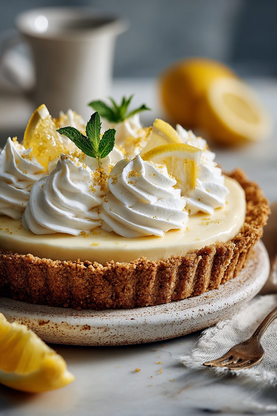 This recipe is one of those “don’t overthink it” affairs. I used to worry about the whipped cream folding technique — then I learned folding is approx. 70% patience and 30% pretend you know what you’re doing. Once I left the pie in the fridge too long and it set into a cheesecake-ish brick; still delicious, but less dreamy. I’ve also tried using crushed shortbread instead of graham crackers and, to my shock, it made the crust extra buttery and perfect. If you’re feeling brave, zest the lemon big-time — the zest is where the personality lives.