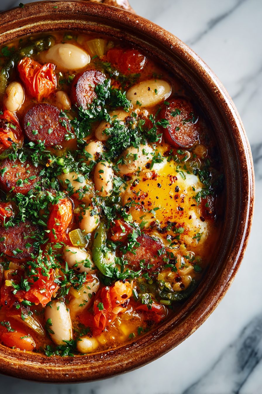 This cassoulet is the kind of cozy, loud, saucy bean-and-meat hug you want on a cold night — slow-ish, forgiving, and somehow celebratory even on a Tuesday. It’s a one-pot riff on the French classic: white beans, browned sausage and pork, tomato-ey richness, and a crunchy breadcrumb top if you’re feeling fancy. What makes it special is the deep, caramelized flavor that comes from layering simple things and giving them a little time (and a lot of love) — plus it’s the kind of meal that feeds you for days and only gets better reheated.