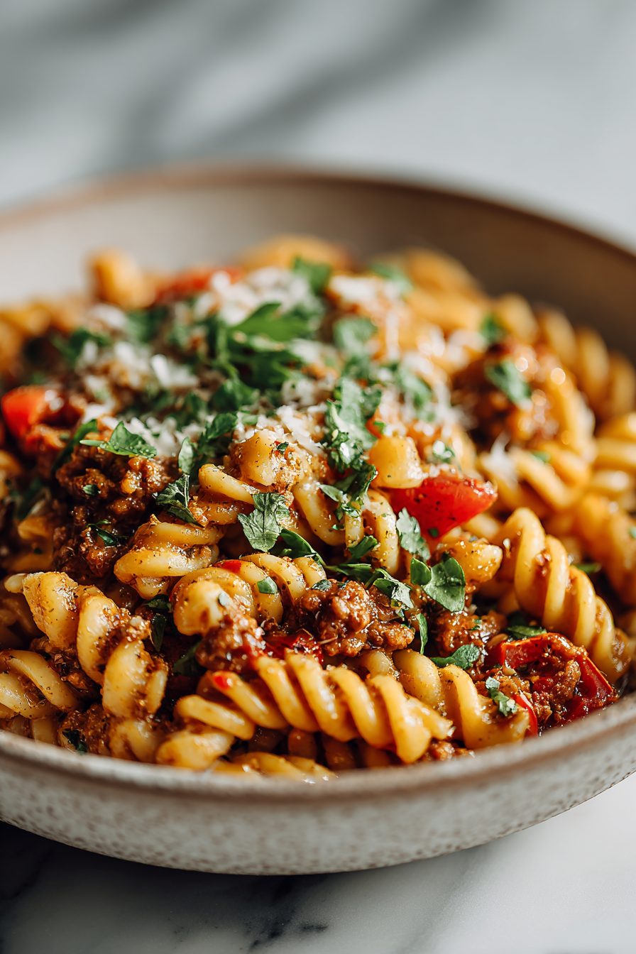My husband calls this “the everything-pasta” because he’ll eat literally anything I throw into the pot as long as there’s cheese involved. True story: the first time I made it I forgot the taco seasoning and panicked, then improvised with chili powder, cumin, and smoked paprika — and he declared it superior to anything we’d had before. Now it’s our go-to for nights when we’re both exhausted but still want something comforting and fast. The kids love scooping the melty bits off the bottom, which I secretly also love.