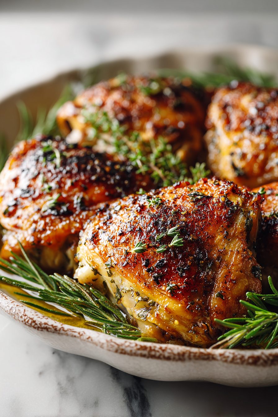 My husband will gladly tell anyone who’s listening that this is “the chicken.” He brags about the crispy skin at parties (bless him), and my toddler asks for “chicken legs” like it’s a treat. We started making this on nights when I was too tired to think and somehow it ended up becoming our Friday ritual: warm biscuits, a quick green salad, and chicken that didn’t make me regret life choices. Once I forgot to dry the thighs properly and the skin steamed instead of crisping — we called it “soggy chicken” that night and laughed through it. Now I never forget the paper towels.
