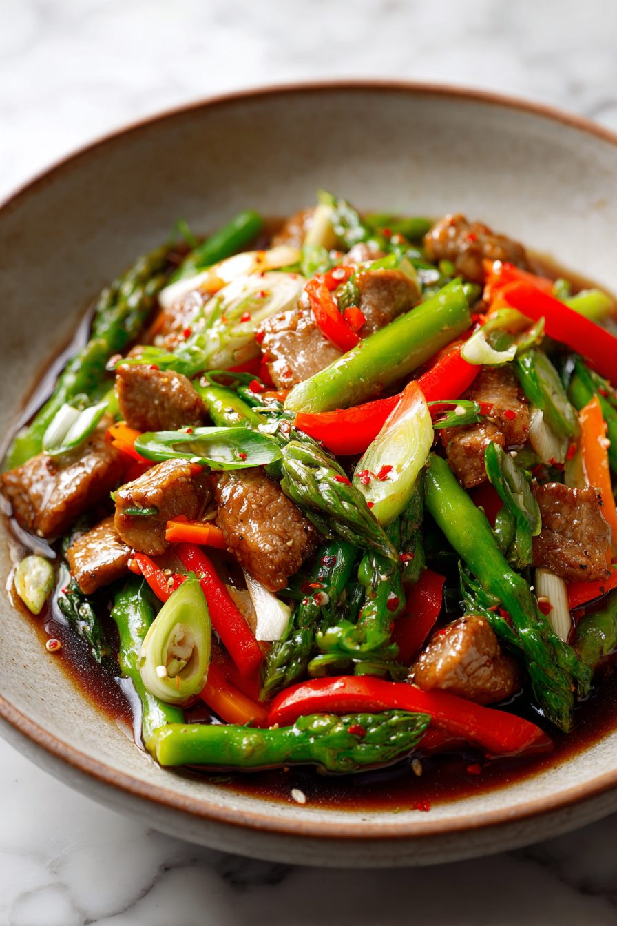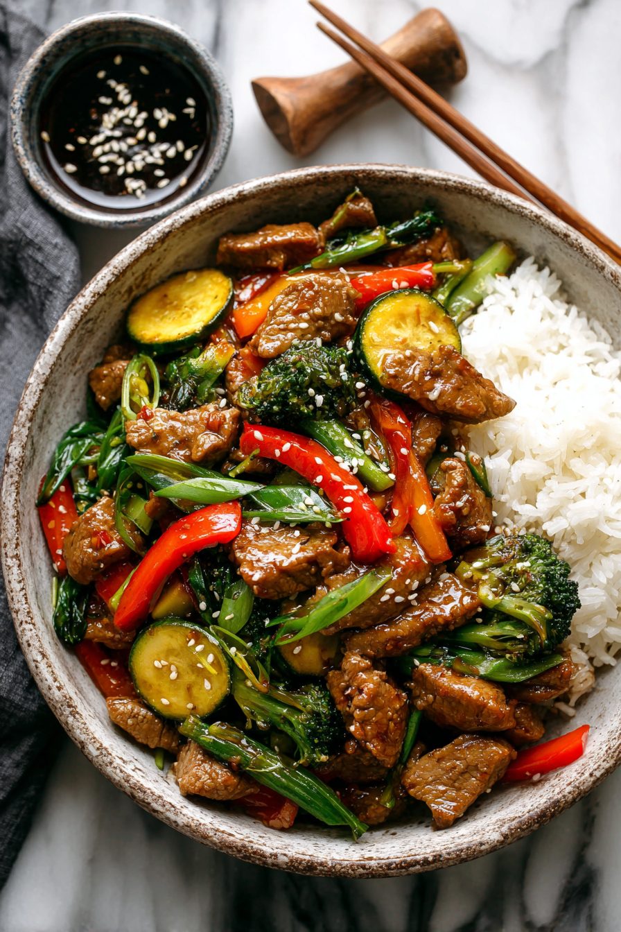 Leftovers keep in a sealed container 3–4 days in the fridge. Reheat in a hot skillet with a splash of water until the sauce wakes back up and the veggies re-gloss. It also freezes okay for a month—thaw overnight, then quick reheat. And yes, cold bites straight from the container at 10 p.m. are elite. Breakfast stir fry with a fried egg on top? Absolutely.