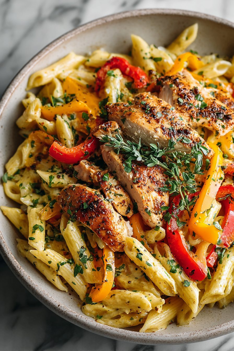 My husband does that thing where he wanders into the kitchen, “just to see what you’re making,” and then steals chicken right out of the pan. Our little family eats this on the couch with bowls way too full, and there’s always that dramatic pause at the first bite—like, wow, okay, we did something here. This recipe slid into our weeknight rotation after a chaotic Tuesday when I blended jarred roasted peppers with a splash of cream because we were out of tomatoes. Happy accident. Now it’s “pepper pasta night,” and no one is mad about it.