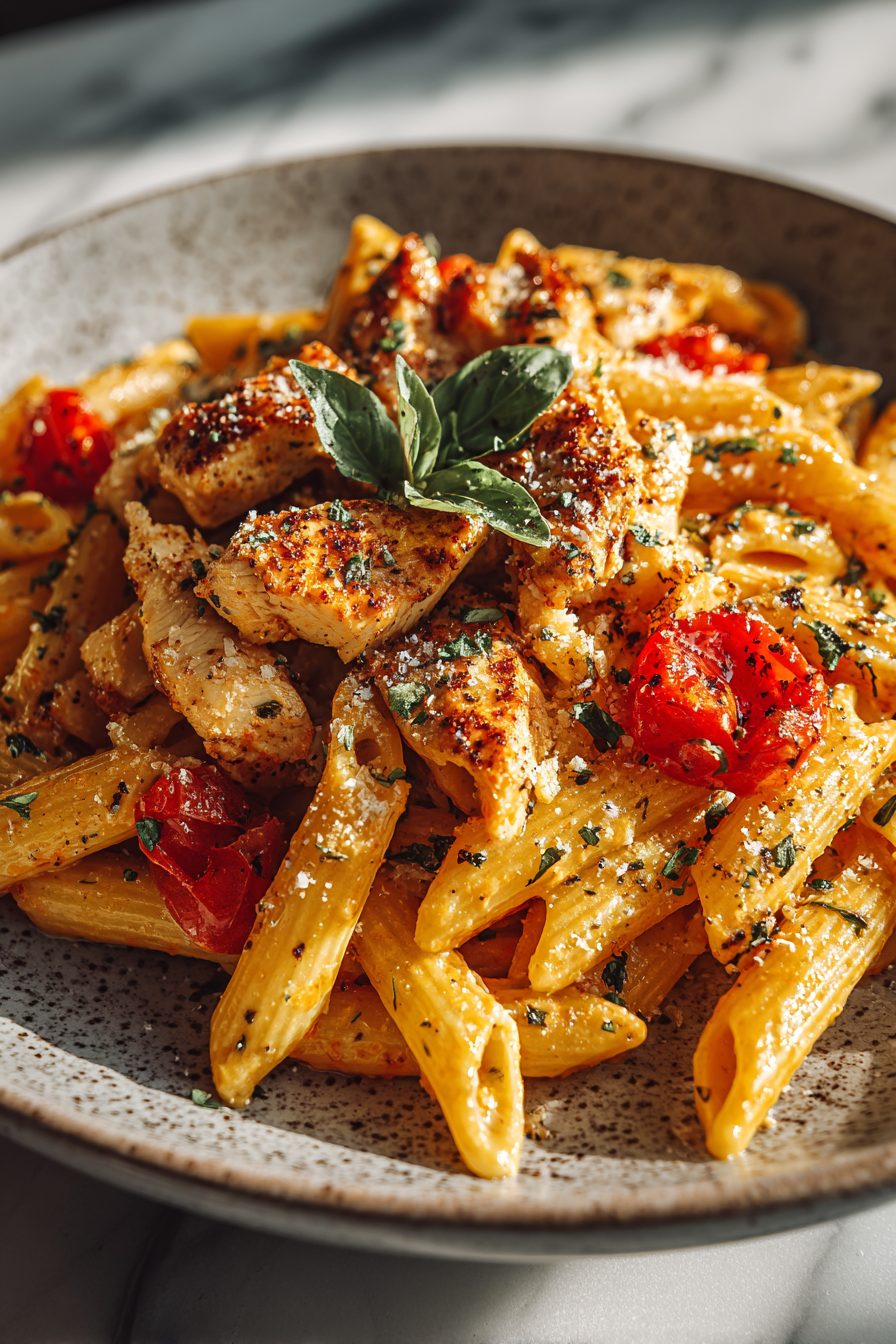 There are a few ways to do a cozy pasta night, and then there’s this: saucy, smoky, roasted pepper chicken penne that basically tastes like a restaurant decided to come over in sweatpants. Chicken gets a quick sear, roasted red peppers turn into a velvety, sunset-colored sauce, and penne shows up like the best friend who knows how to hold onto all that goodness. It’s creamy without being heavy, a little garlicky, and pops with sweet pepper and a teeny kick if you want it.