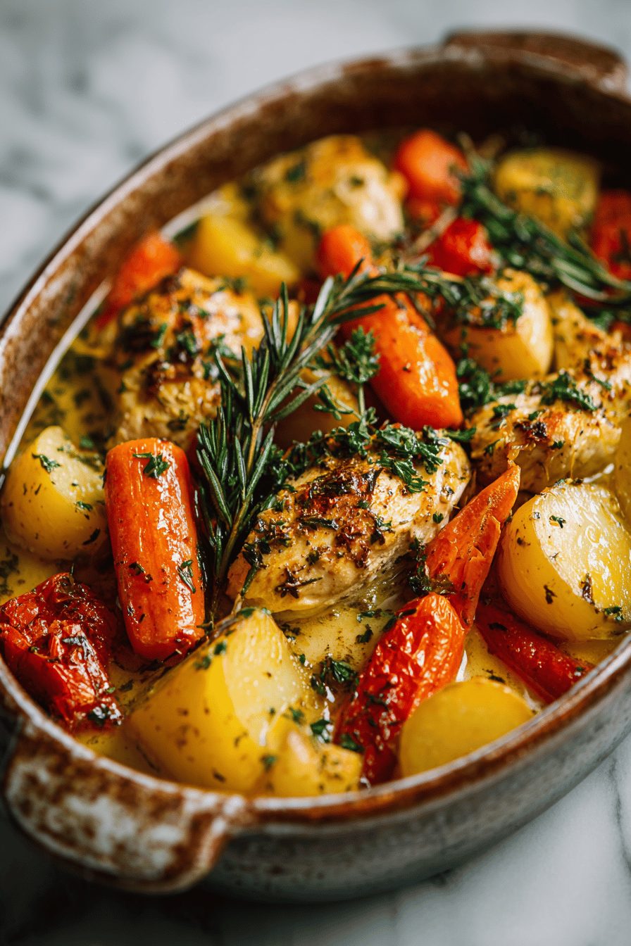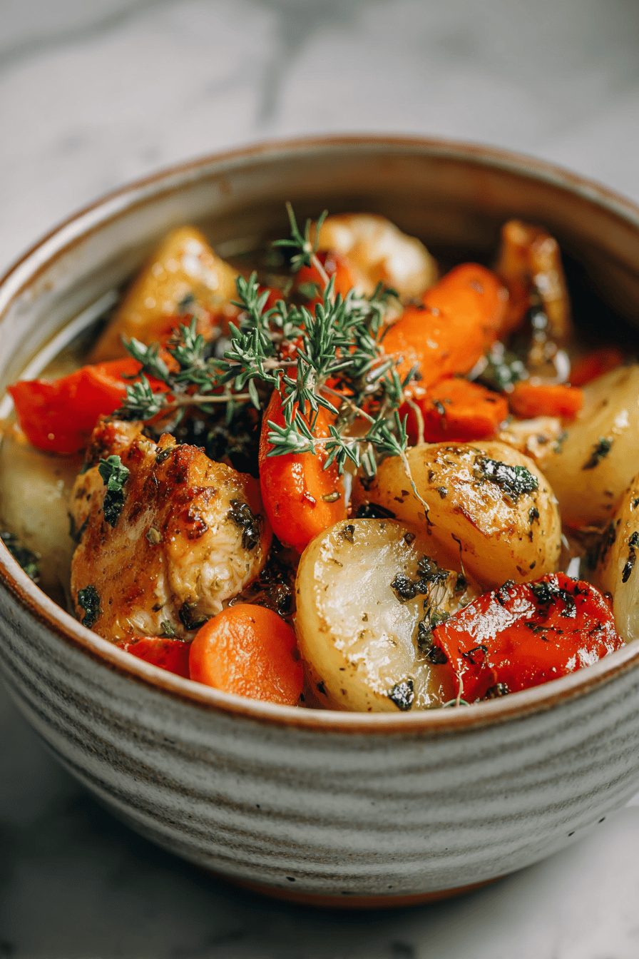 I’m not usually one for humble stews, but this Easy Roasted Vegetable Chicken Stew quietly became our weeknight hero — cozy, forgiving, and full of those roast-y, caramelized veg flavors that make everyone at the table go quiet for a minute. It’s essentially sheet-roasted vegetables plus braised chicken, but somehow better because everything gets a little crisp and a little silky, and the stew tastes like effort without actually needing it.