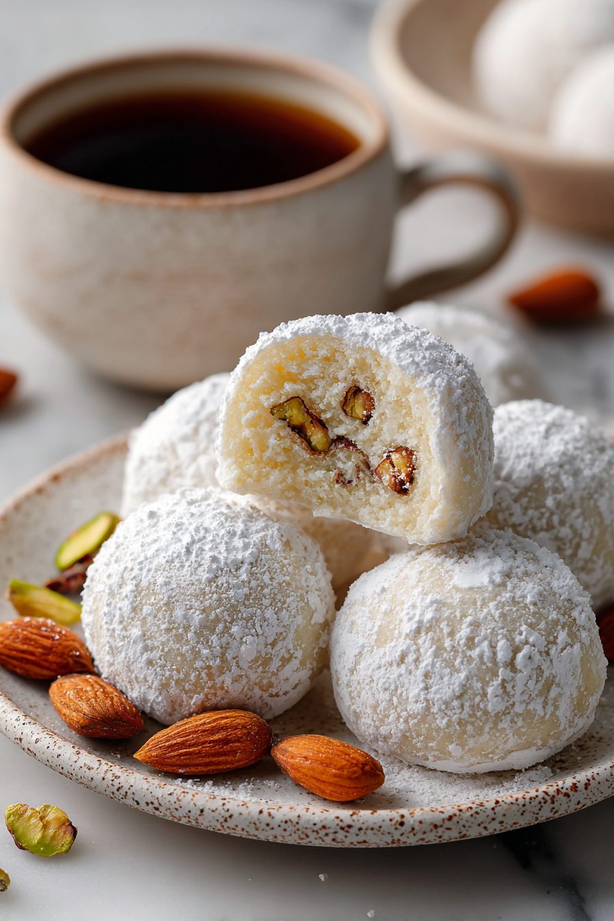 I’m gonna be honest: I’ve tried making these three ways — by hand, in the mixer, and in the food processor. Processor is fastest but you lose a tiny bit of airy texture; hand-mixed is lovely if you have time. I once forgot to chill the dough and the cookies flattened into sad little saucers, so chilling is non-negotiable for me now. Also, coat them twice: once warm for that first sticky layer, and once cooled for the snowy look that makes guests gasp like you’re Martha. My dog once walked across a bag of powdered sugar and looked like a ghost; it was the cutest disaster.