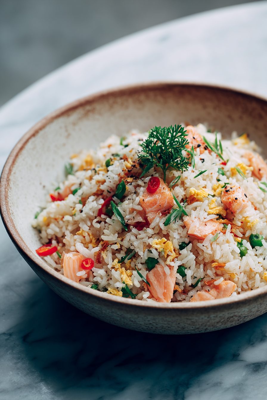 I’ve burned more garlic than is socially acceptable — twice. Once I flaked the salmon directly into the pan and the oil splattered like it had feelings; lesson learned, now I keep a little space and a lid nearby. I also discovered that adding the egg in a thin ribbon and letting it set before mixing keeps the rice from turning into an oily mush. One time I swapped scallions for chives because the store was out, and it actually made the dish taste fresher and lighter — happy accident.