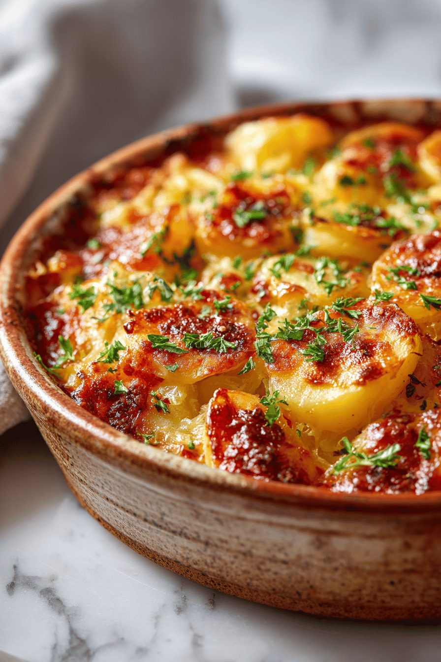 Want meat? Brown some bacon or diced ham and scatter it between layers. Dairy-free? Use a thickened oat milk plus a drizzle of olive oil and a tablespoon of nutritional yeast for umami. Cheese-free households: increase the mustard and herbs and add a sprinkle of toasted breadcrumbs on top for crunch. I’ve swapped potatoes for sweet potatoes once — good, but sweeter; balance with a sharper cheese or extra mustard.