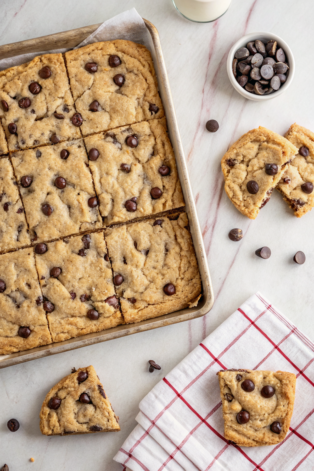 Bake a full pan of soft, chewy chocolate chip cookies with crisp edges—no scooping or batches required.