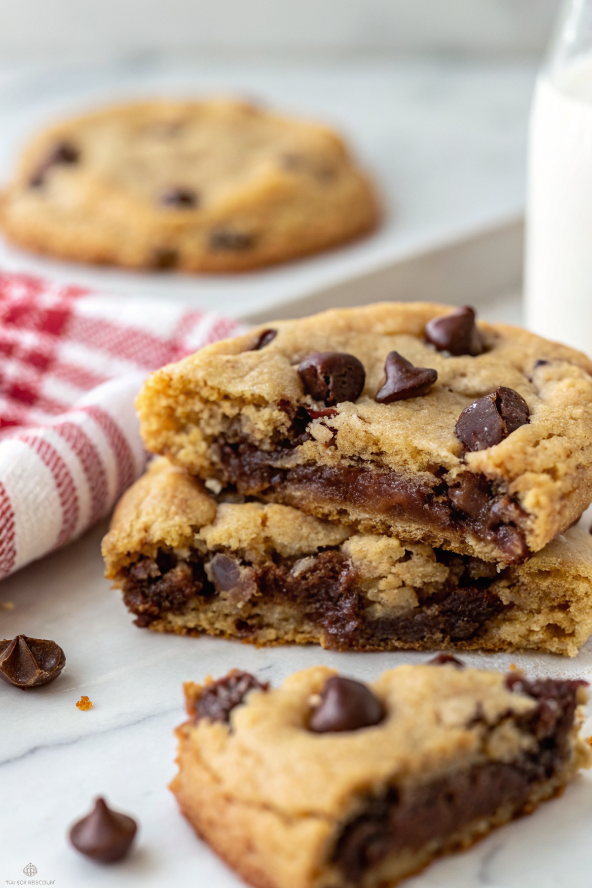My husband calls these his “weekend miracle cookies.” He’ll do anything for the first warm slice — literally anything, including washing a million dishes. The kids still argue over who gets the last corner piece. Once I made them with boxed cookies because I was tired and, honestly, life-saving, but when I made the sheet-pan version the next day they declared it “real cookie energy.” It’s become our staple when we need something quick-ish and ridiculously crowd-pleasing.