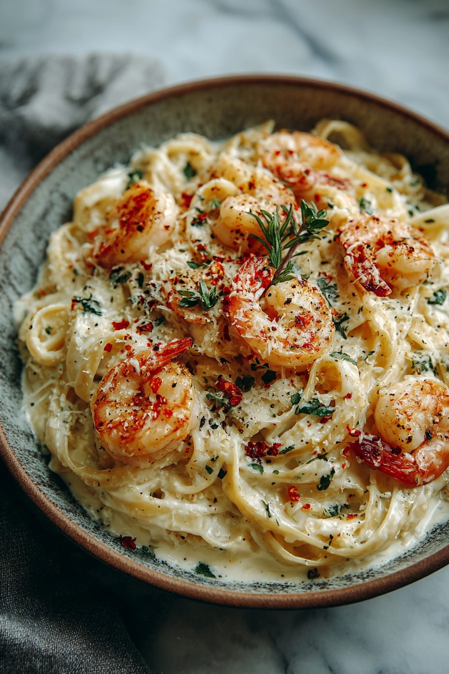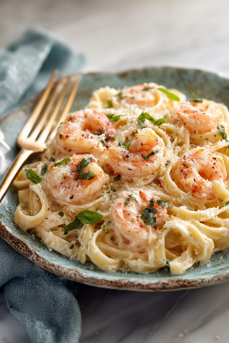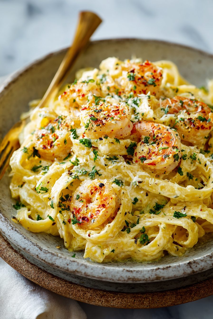 This dish rewards a little attention: finish the pasta in the sauce with a splash of pasta water and it becomes magic. I’ve learned the hard way that garlic burns faster than you remember — low and slow just before the shrimp go in. Once I tried using milk instead of cream to be “healthy” and the sauce sulked; you can, but don’t expect the same velvet. Also: don’t overcook the shrimp. Pink, curled, and slightly snappy is the goal, not rubbery. If you want more flavor, brown a little butter until it’s nutty before adding cream — sounds scary but it’s delicious.