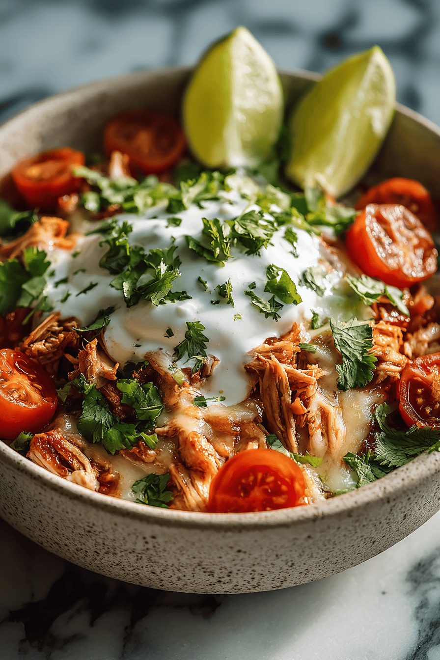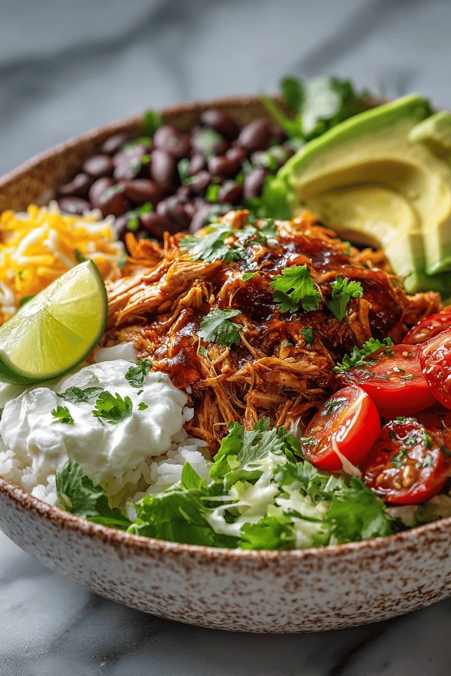 I love a recipe that feels like a hug in a bowl—and this slow cooker chicken burrito bowl is exactly that: tender, slightly sticky shredded chicken, smoky spices, a little lime zing, and all the crunchy toppings you can shove on top. It’s cozy, forgiving, and somehow makes dinner feel like a little celebration even on the most exhausting weeknight.