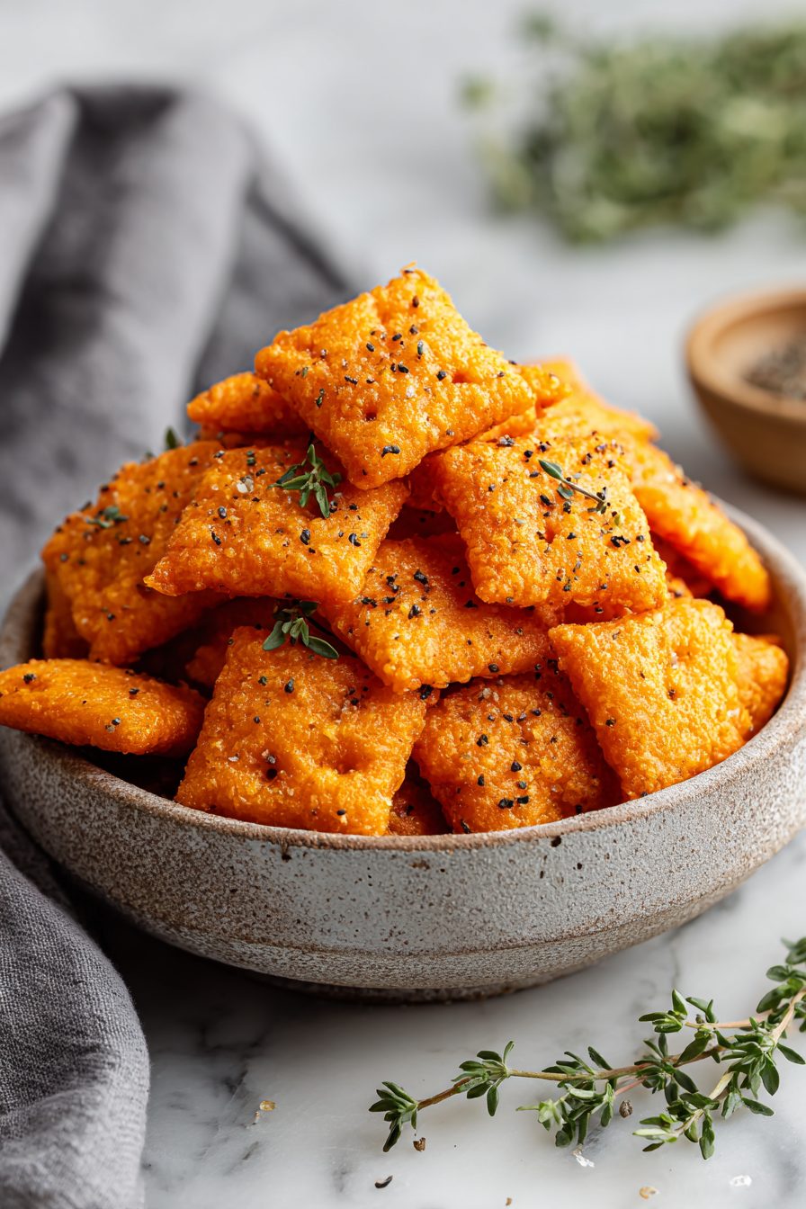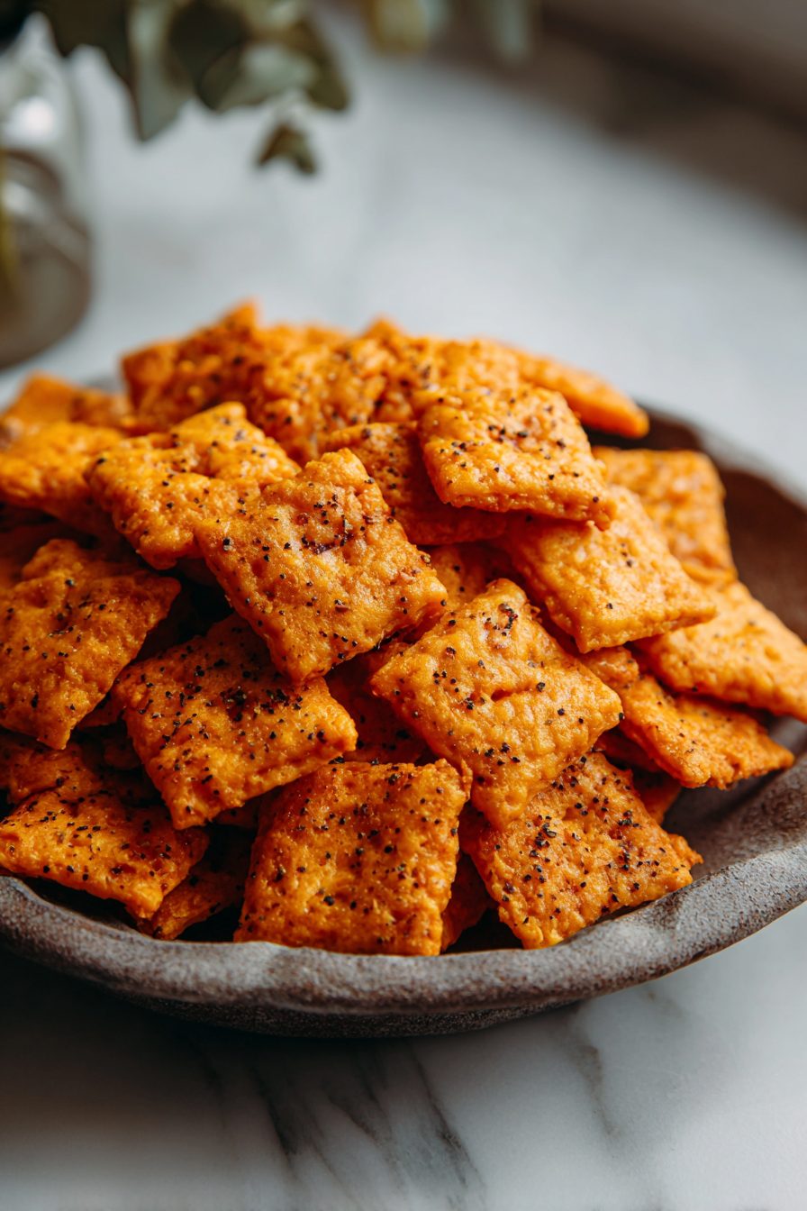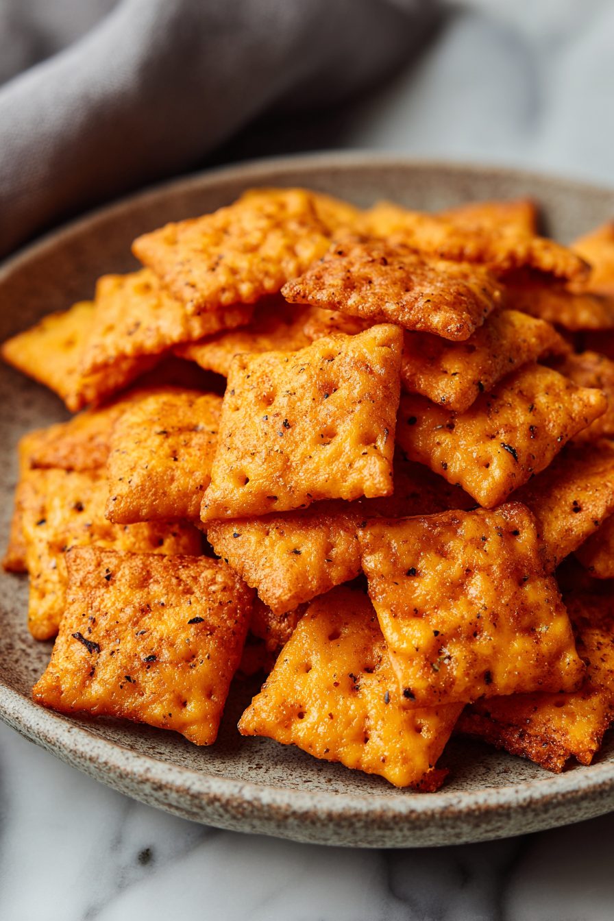My husband is the official taste-tester and chief crumb-sweeper. He’ll take a bowl to the couch, declare them “dangerous,” and then come back for more like he’s made poor life choices (I love him for it). Our kid drops one on the floor and it becomes a sacred artifact until it’s reclaimed three minutes later. These crackers are the kind of thing that turned our boring movie nights into a ritual—smoke outside, snacks inside, crumbs everywhere. I once tried to make them without chilling the dough (rookie move) and ended up with flatter, sad squares that tasted great but looked like scrambled pieces. Chill them and they stay cracker-crisp—moral of the story.