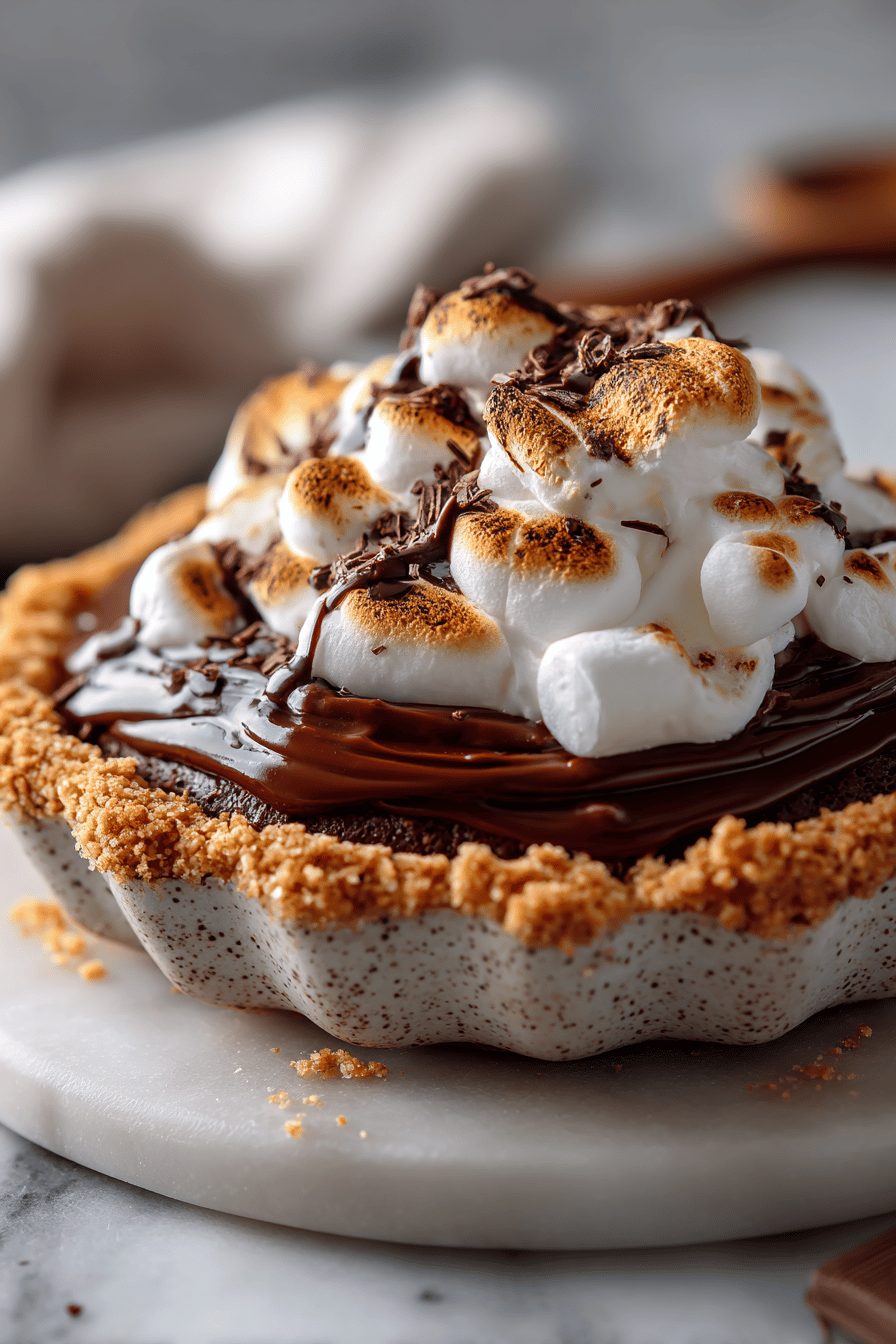 This s’mores chocolate pie is basically summer camp in a pie plate — graham-cracker crust, a silky chocolate filling, and a gooey toasted marshmallow top that cracks like candy with each fork stab. It’s comforting, a little ridiculous, and the kind of dessert that makes everyone hover in the kitchen pretending they don’t want the last slice (but they do).
