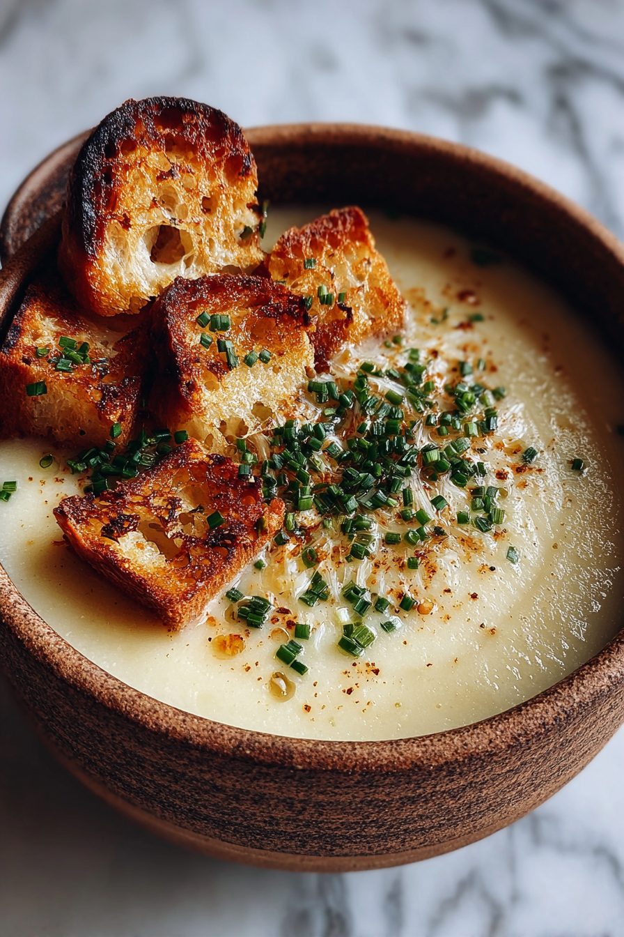 – Produce/Fruit: Choose firm, plump garlic bulbs — avoid soft or sprouting cloves; fresher garlic = brighter soup.