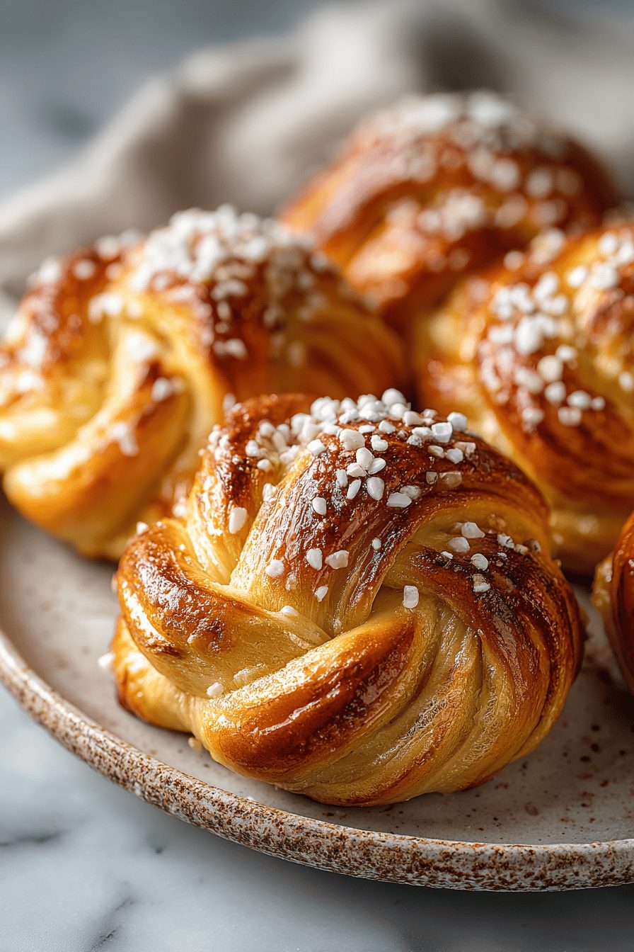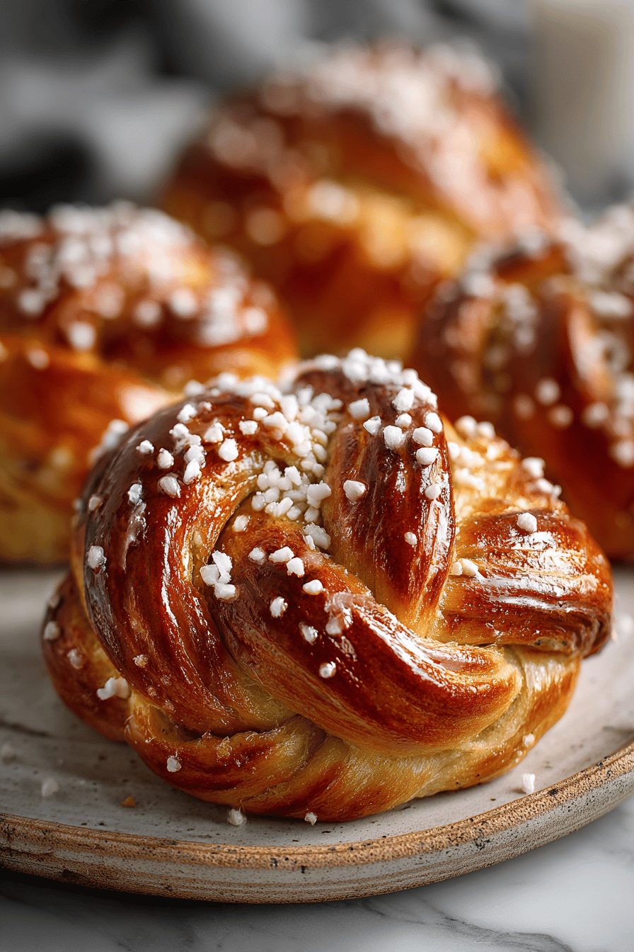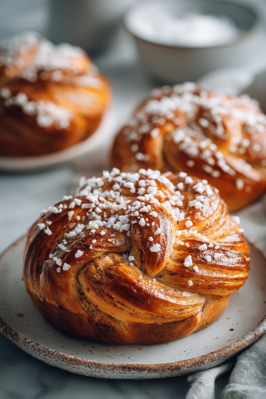 This dough is soft and forgiving, but the little quirks are my favorite part. I once forgot the cardamom in the dough and had to scrape it back in after the first rise — the buns were a little uneven, but everyone devoured them anyway. If you like a tiny caramel edge, brush with melted butter mid-bake for a nutty finish. I sometimes swap the classic pearl sugar for sliced almonds when I run out (and yes, that’s also great). If you’re lazy like me, use a stand mixer; if you’re romantic, hug the dough with your hands.