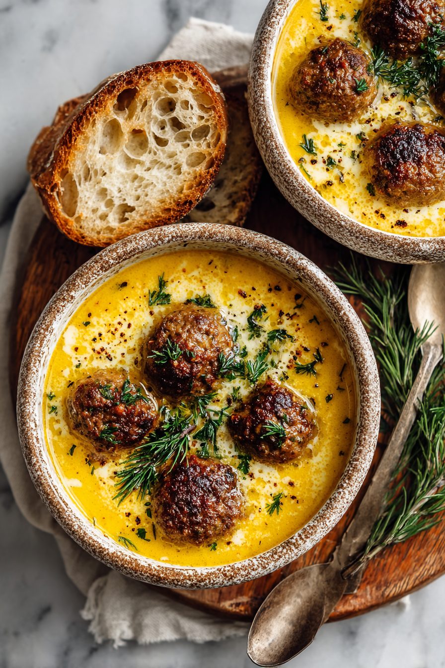 This is a bowl of cozy, slightly tangy, creamy meatball soup — the kind of dinner that feels like a hug and doesn’t pretend to be fancy. It’s meatballs, simmered in a warm, lightly spiced broth with a hit of cream and tiny noodles (or potatoes if you like), finished with a sprinkle of dill. Comfort food that’s fast enough for weeknights and impressive enough for when friends drop by drunk on good intentions.