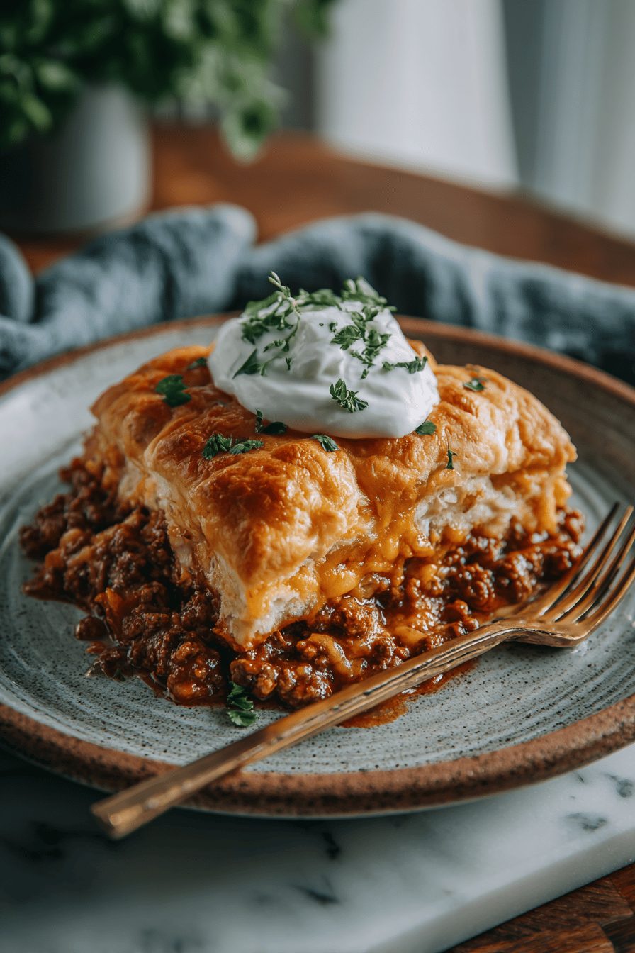 This recipe is forgiving — which is a nice word for “I forgot the cilantro and it still rocked.” I brown the meat a little more than necessary on purpose for extra texture, and I always reserve a handful of cheese to sprinkle on top before the crescent dough goes on. One time I skipped draining the canned tomatoes and it made the filling soupier; I drained and simmered until it tightened up. Also: don’t panic if your crescent seams overlap oddly — patch them with a little water and press, it bakes into one pretty crust.