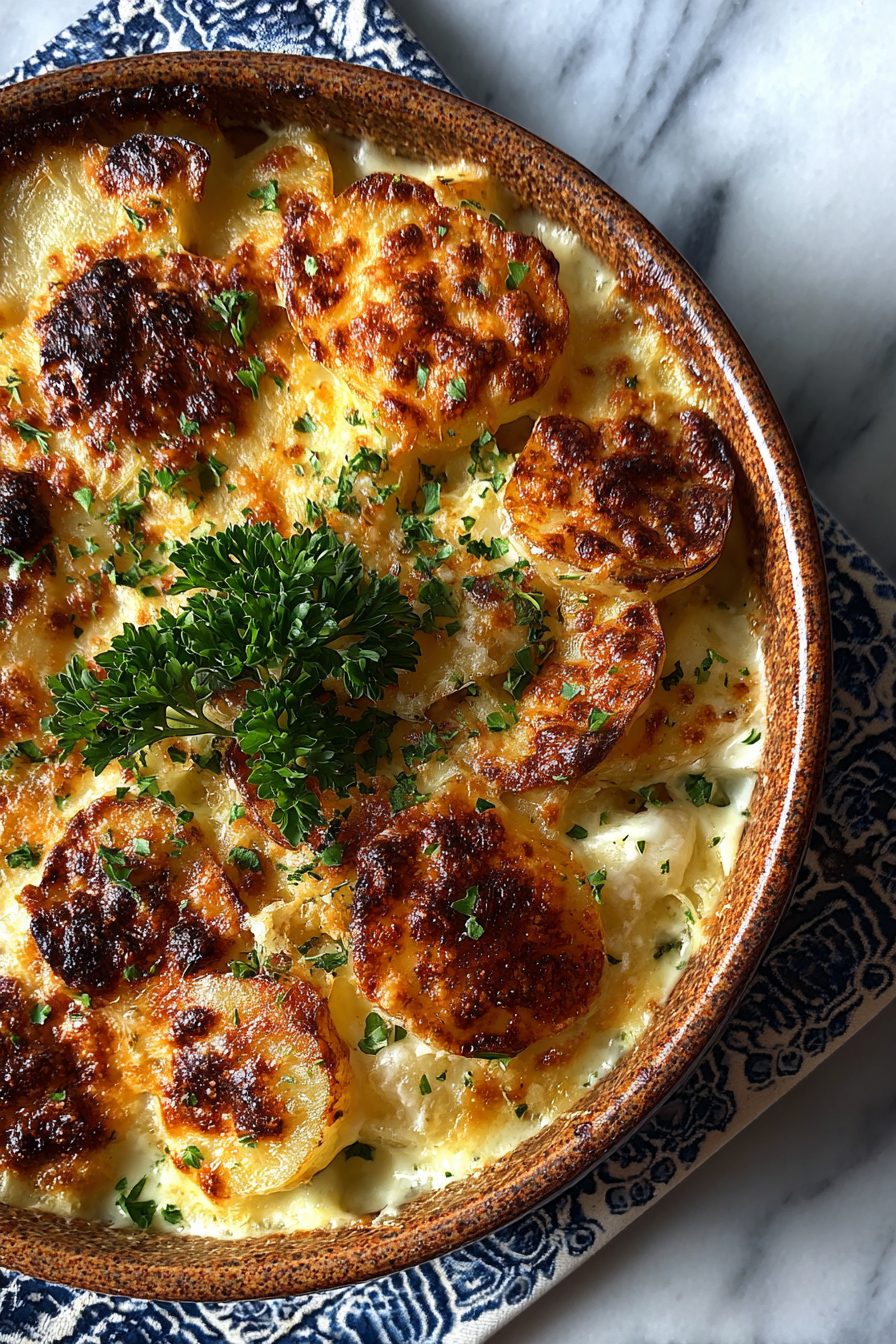 – Par-cook potato slices in salted boiling water for 5–7 minutes to cut overall bake time; don’t fully boil them or they’ll fall apart.