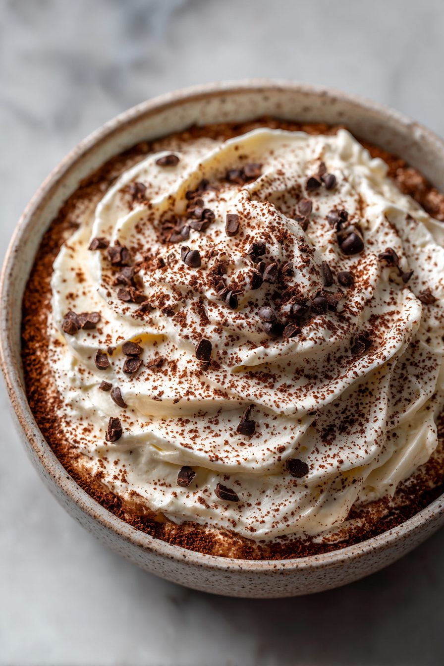This recipe is one of those gleeful kitchen cheats. I’ve mixed mascarpone with cream cheese when the real thing was nowhere to be found, and once I used instant espresso stirred into a little hot water because my espresso machine was sulking. Both times it still tasted like dessert victory. Watch the cocoa dusting — I like a light, dramatic sprinkle rather than a blizzard. Also, if you whip the cream too long, you’ll get butter; learned that the messy way on a Sunday afternoon.