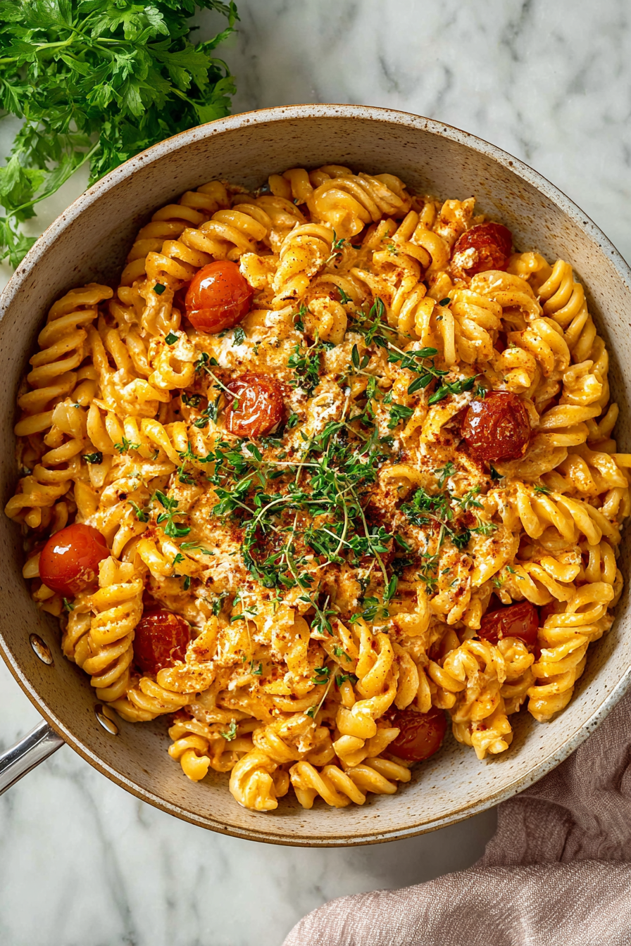 My husband calls this “tomato mac with a college degree” and I’m honestly not mad about it. The first time I made it, the kids were “helping” (read: flinging dry pasta like confetti), and he did that thing where he pretends to politely wait, but he was absolutely hovering with a spoon. He took one bite out of the pot and just nodded like, yeah, that’s dinner forever now. It’s become our Tuesday night peace treaty meal—everyone eats it, nobody argues, and we usually end up standing around the stove stealing more bites before it even reaches the table.