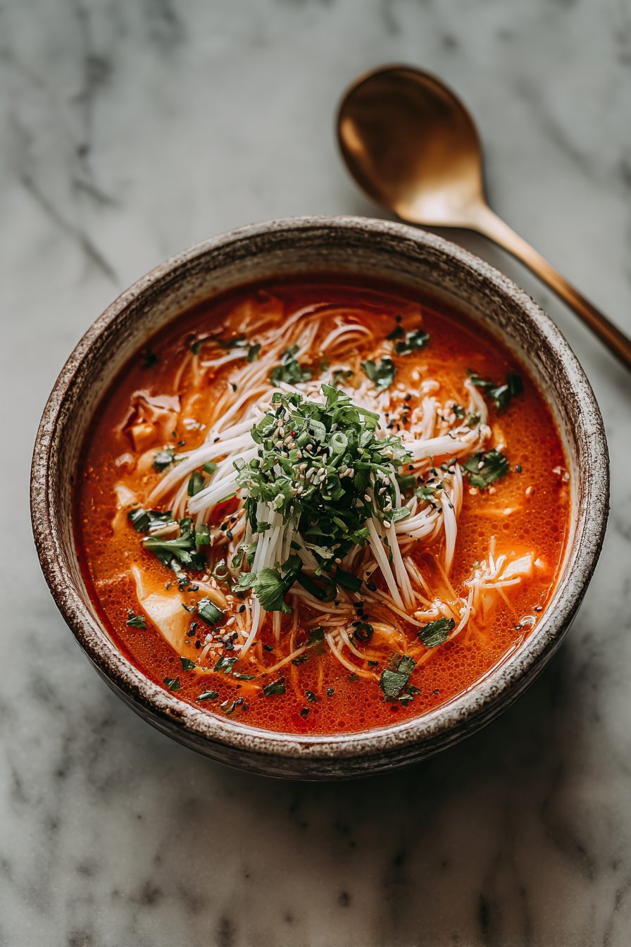 This recipe is an original creation inspired by classic Easy Tomato Enoki Mushroom Soup Recipe flavors. All ingredient ratios and instructions are independently developed.