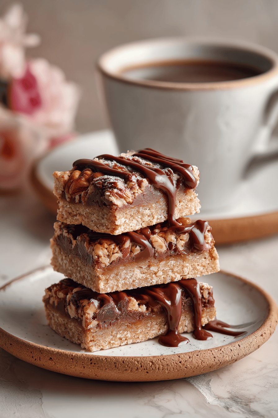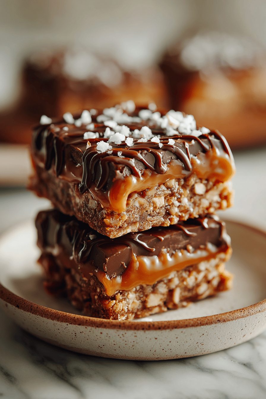 I learned early that the trick is to toast the oats and nuts a hair before assembling — it brings out the nuttiness in a way that raw oats can’t. I once ignored that step and ended up with a mushy, sad middle that tasted like soggy cereal; never again. Also, if you’re tempted to pour the caramel while the base is still hot, do it slow and steady — I made a sticky-dripping mess when I rushed and spent 10 minutes scraping caramel off my counter with a butter knife. Worth the extra five minutes of patience for actually clean counters.