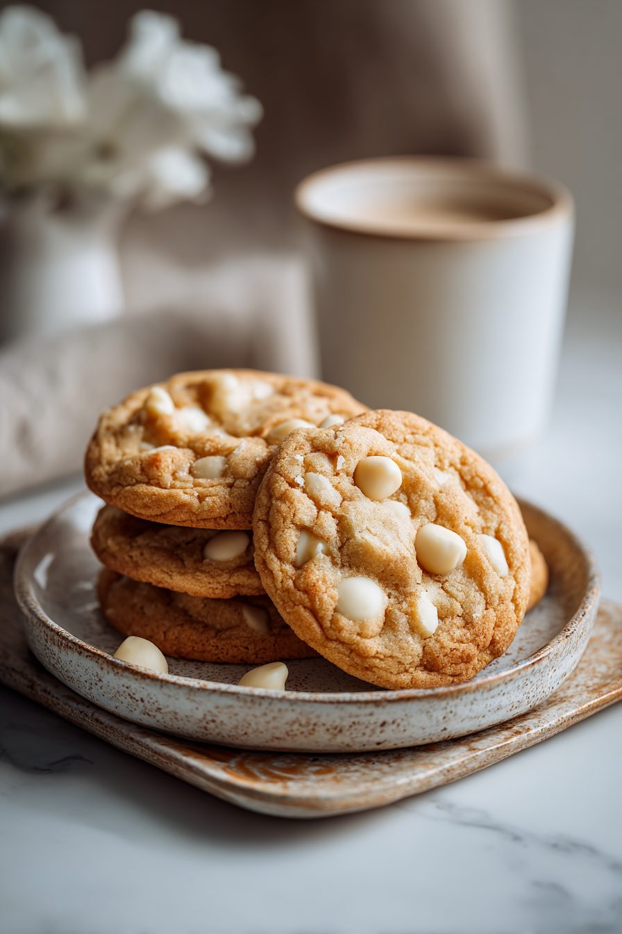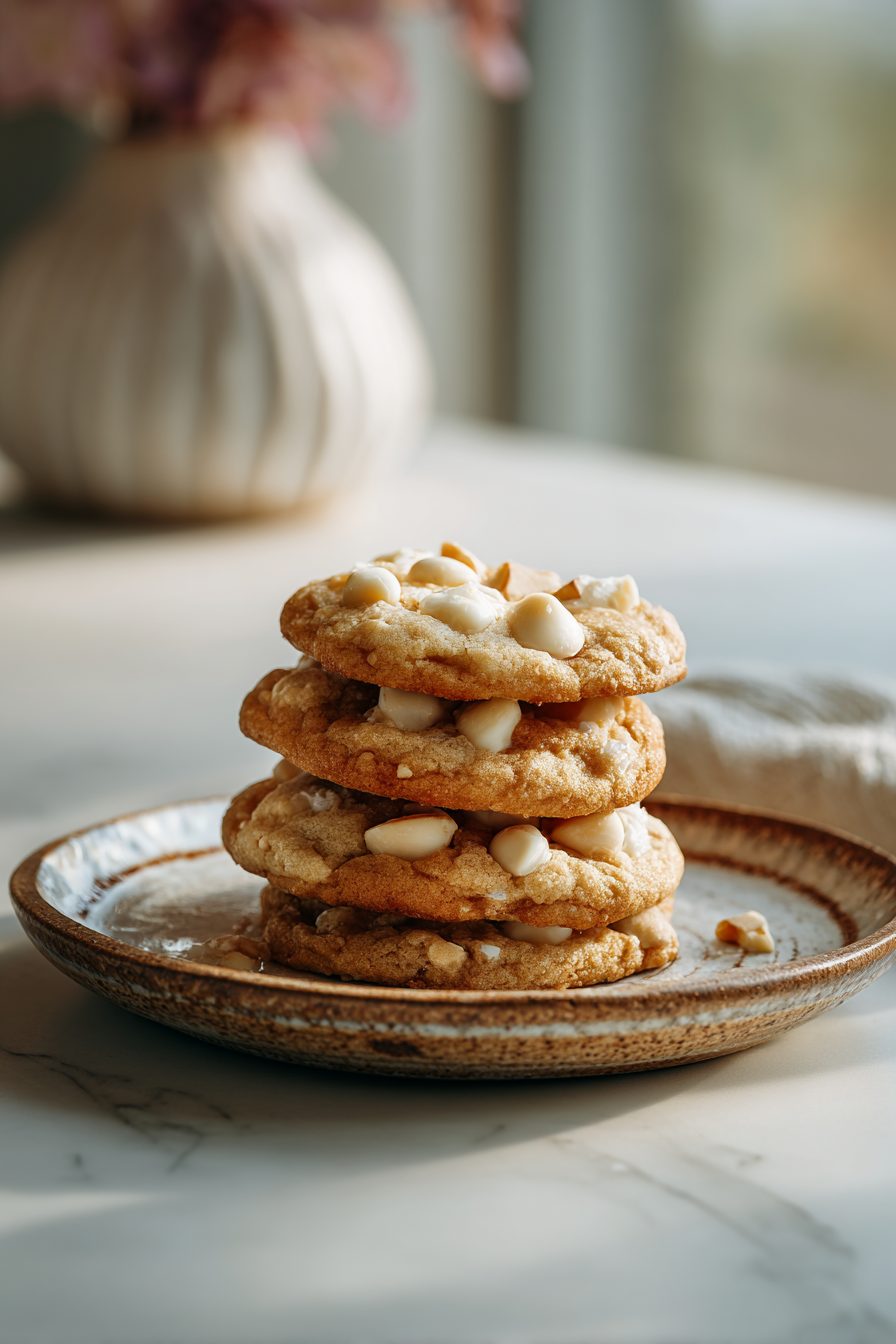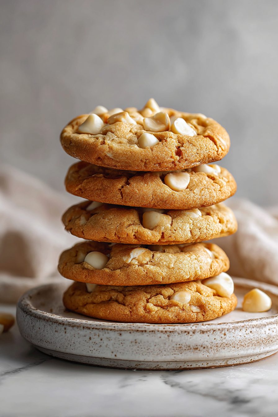 These cookies are buttery little troublemakers — crisp on the edges, chewy in the middle, studded with toasty macadamia nuts and pockets of sweet white chocolate that melt just enough to be dangerous. They’re not fancy, but they’re the kind of cookie that disappears from a plate in under an hour and makes everyone ask if you baked them that morning.