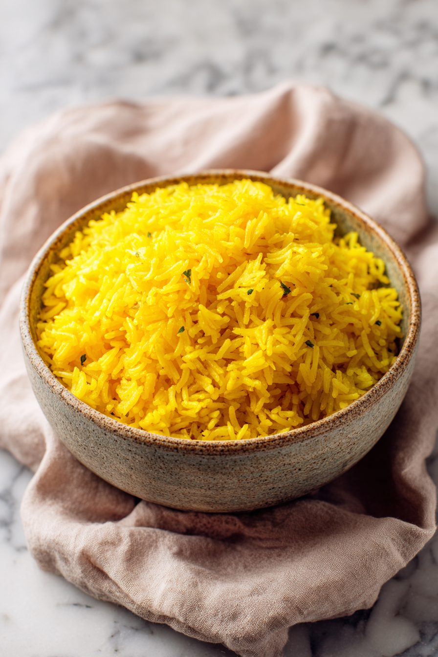 Sunny, cozy, and ridiculously comforting, this is the yellow rice I make when dinner needs to feel special but I have approximately three minutes of energy. It’s fluffy, golden from turmeric (with a little optional saffron when I’m feeling fancy), and cooked in savory broth so every grain tastes like it got invited to the good party. It leans pantry-friendly, kid-happy, and weeknight-easy—basically the side that steals the spotlight.